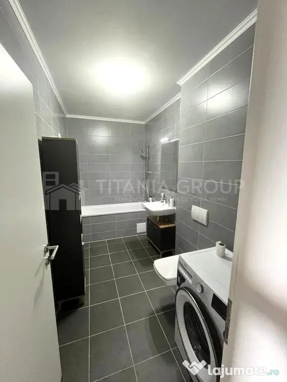 - Baia dotată cu cada, oglina si spatiu pentru depozitare;