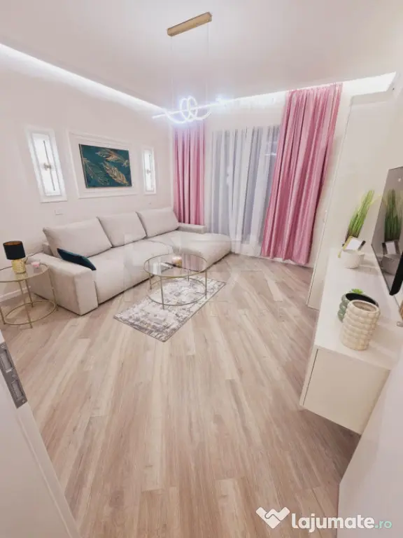 • Compartimentare: 1 cameră de zi spațioasă (15.9 mp), bucătărie separată complet utilată (9.1 mp), baie modernă (3.8 mp), hol generos (6.1 mp);