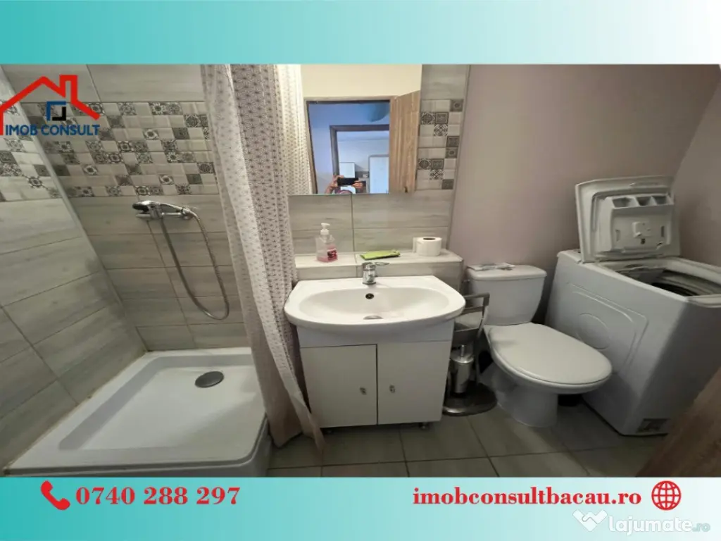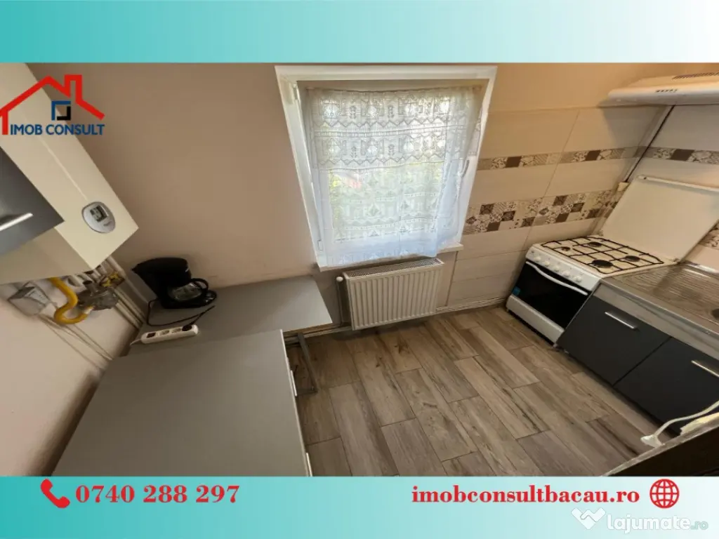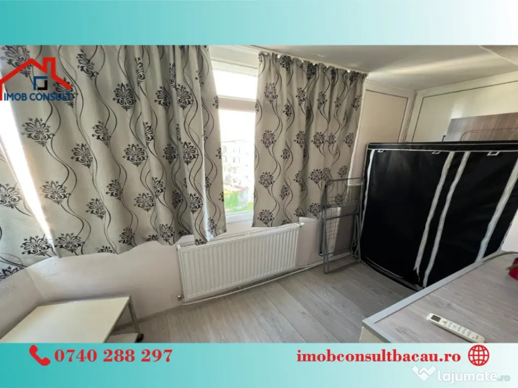 Echipa Imob Consult Bacau va propune spre inchiriere aceasta garsonieră situata in cartierul Nord, Bacău. Detalii esentiale: - 40 m²; - Decomandată; - Balcon închis; - Centrală proprie; - Instalatie aer conditionat; - Tâmplărie PVC; - Mașină de spălat; - Frigider; - Complet mobilată; - Bucatarie separata; - Baie separata. Locație excelentă: - Marketuri; - Farmacii; - Cafenele & restaurant; - Aproape de Arena Mall. Programează o vizionare! - Corina: 0740 288 297; - Cosmin: 0754 583 811, sau la sediul agenției noastre, Imob Consult Bacau, situat pe strada Banca Națională nr. 27 la intersecția cu Str. Neagoe Vodă, langa Irish Pub. Confort: 1 Tip imobil: Bloc de apartamente