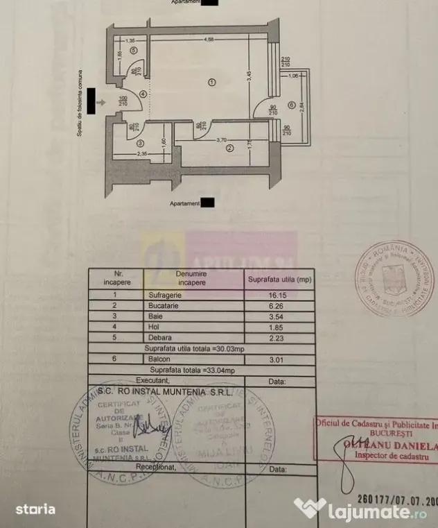 Compartimentare eficientă: sufragerie spațioasă, bucătărie separată, baie, hol, debara/dressing, balcon
