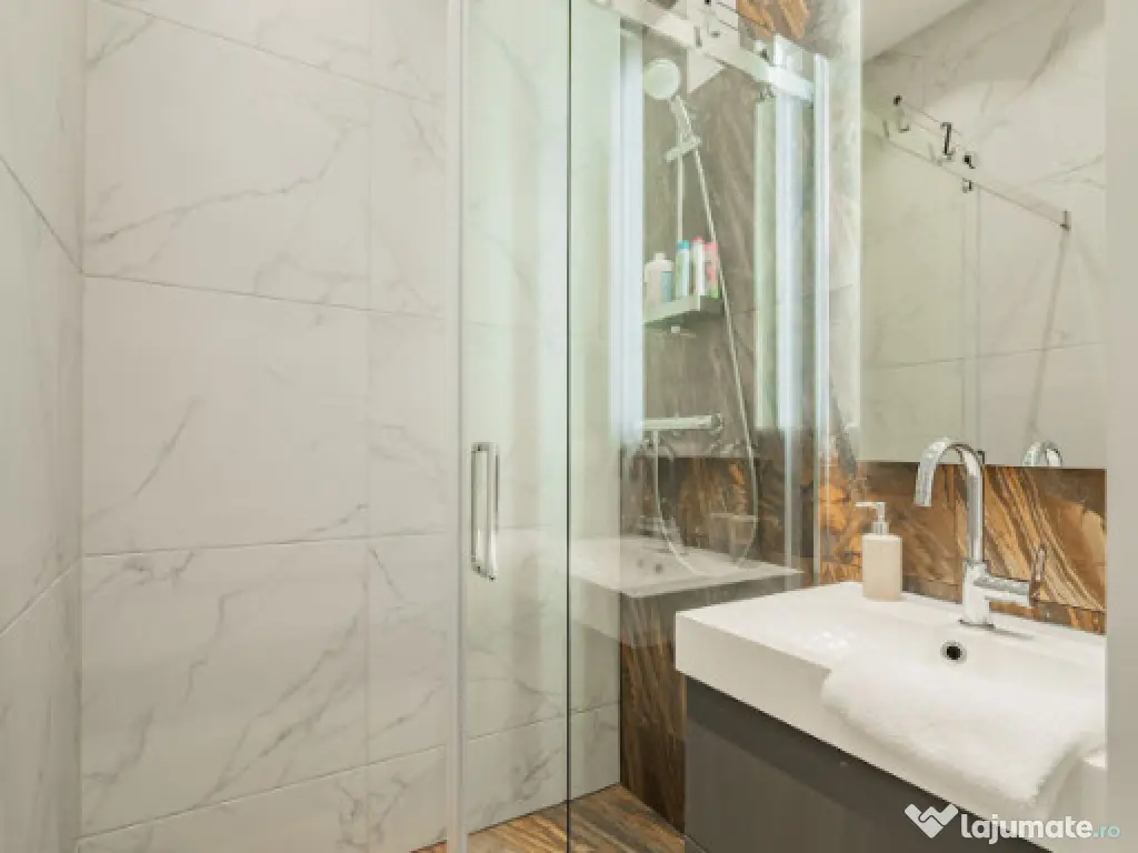 Garsonieră de închiriat în Bucureștii Noi, într-o zonă liniștită, aproape de Parcul Bazilescu. Suprafață de 31 mp, etaj 1 din 4, decomandată. Bucătărie mobilată, cameră luminoasă, baie modernă. Dotată cu centrală proprie, aer condiționat și electrocasnice de calitate. Confort: 1 Tip imobil: Bloc de apartamente
