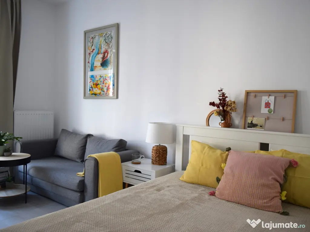 Disponibilă pentru închiriere, garsonieră luminoasă, complet utilată și mobilată, ideală pentru o persoană sau un cuplu. Se află la etajul 6/11, iar blocul dispune de 2 lifturi.