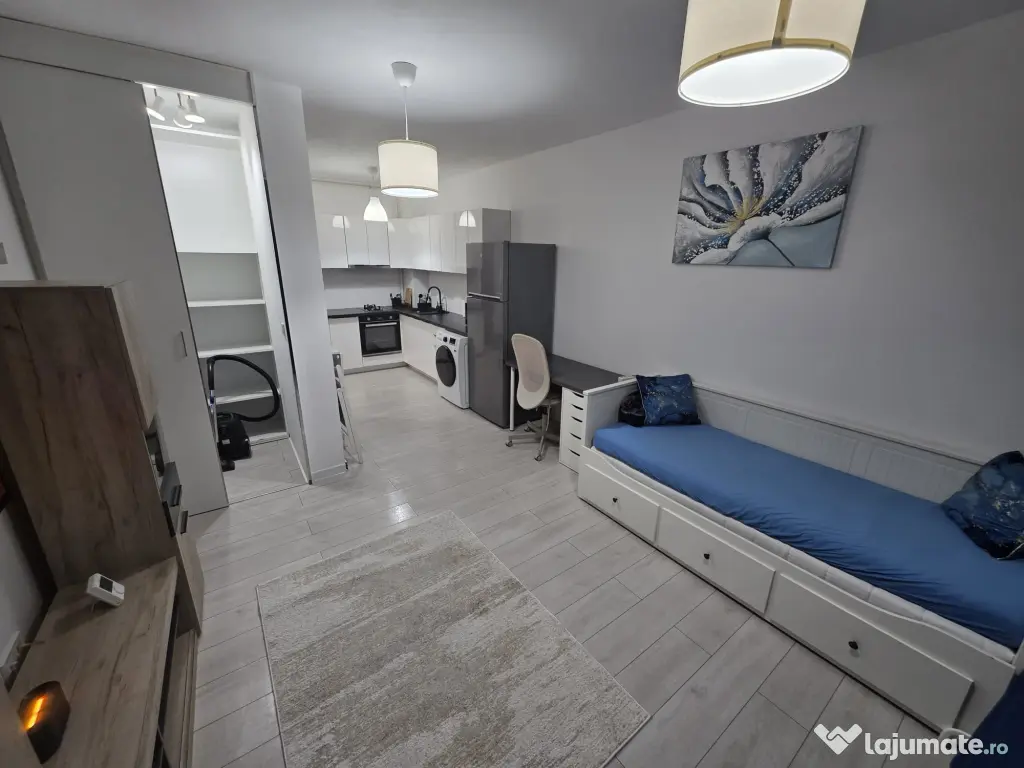 Proprietar ofer spre inchiriere garsoniera moderna situata in complex privat cu control de acces, supraveghere video, bloc nou, complet mobilata si utilata cu:
