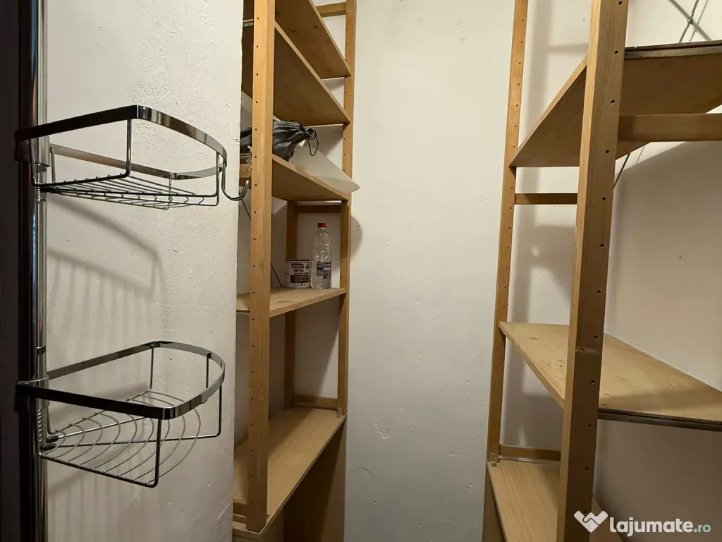 Există o debara amenajată cu rafturi, 2 holuri, bucătărie mărită. Mobila fost facută la comandă.