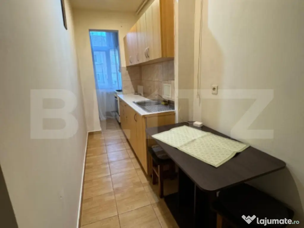 Blitz oferă spre închiriere o garsonieră cochetă Detalii garsonieră – Suprafață utilă: 25 m², compartimentare eficientă – Configurație decomandată: cameră spațioasă, bucătărie separată, mobilată și complet utilată, baie dotată cu tot ce este necesar pentru confort zilnic – Etaj: doi, într-un imobil îngrijit, ideal pentru studenți sau tineri. Dotări & confort – Garsonieră complet mobilată – Mașină de spălat rufe – Spații de depozitare generoase și mobilă practică – Luminoasă și ușor de întreținut Avantaje zonă Un cartier liniștit, rafinat și accesibil, cu cafenele, magazine și spații de relaxare la doar câțiva pași. Acces rapid către: – Magazine, farmacii, stații de autobuz Programează vizionarea și descoperă această garsonieră — ideală pentru cei ce caută un spațiu compact, bine organizat și gata de locuit imediat! Cod ofertă / ID BLITZ: P155871 Id intern: P155871 Confort: 1 Tip imobil: Bloc de apartamente