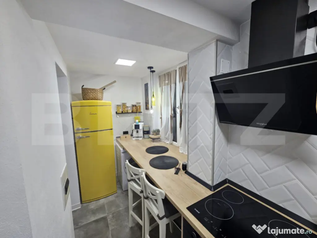 Blitz vă invită să descoperiți o garsonieră cochetă, situată în Ocna Mureș, la parter, cu o suprafață de 41 mp, perfect organizată pentru confortul de zi cu zi. Locuința vă întâmpină cu un hol primitor, o baie îngrijită, o cameră luminoasă și o bucătărie separată, gândită practic. Amenajată cu bun gust, în note moderne, garsoniera se vinde complet mobilată și utilată — gata să devină „acasă” din prima clipă. Poziționarea este un real avantaj: aproape de centrul orașului, dar suficient de retrasă cât să vă bucurați de liniște. În spatele blocului, pădurea creează un colț de natură perfect pentru momente de relaxare și aer proaspăt. Un spațiu ideal pentru cei care caută echilibru între confort, accesibilitate și liniște. Cod ofertă / ID BLITZ: P160887 Id intern: P160887 Confort: 1 Tip imobil: Bloc de apartamente