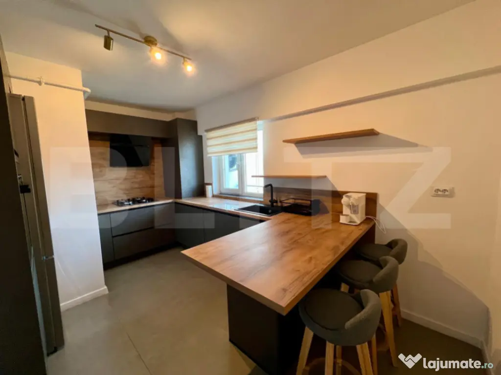 Blitz va propune spre inchiriere o garsoniera deosebită, amenajată cu atenție la detalii și finisaje premium. Imobilul este situat într-o clădire cu 8 niveluri in zona Garii. Garsoniera este complet mobilată și utilată, cu electrocasnice de calitate superioară, oferind tot confortul necesar. Bucătăria este dotată cu toate cele necesare: plită, cuptor, hotă, frigider, mașină de spălat rufe, masina de spalat vase. Mobilierul modern și designul interior rafinat creează un ambient plăcut și elegant. Beneficiaza de aer conditionat care iti permite sa pastrezi sau sa controlezi temperatura optima indiferent de anotimp si centrala proprie. Această garsonieră reprezintă alegerea ideală pentru cei care caută un spațiu intim, modern și elegant, într-o locație de calitate. Nu se accepta animale de companie. Pentru mai multe detalii, va astept la vizionare! Cod ofertă / ID BLITZ: P169074 Id intern: P169074 Confort: 1 Tip imobil: Bloc de apartamente