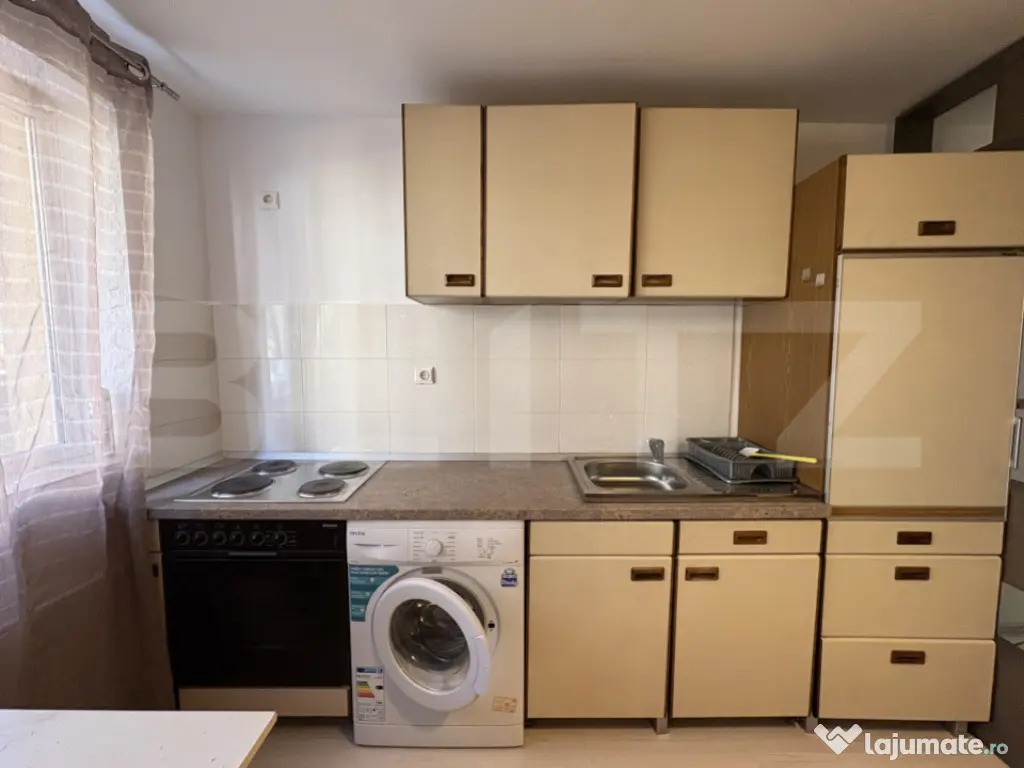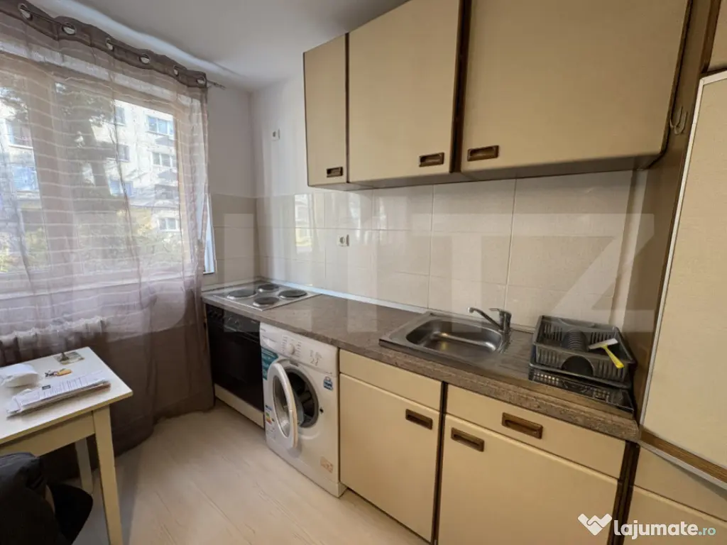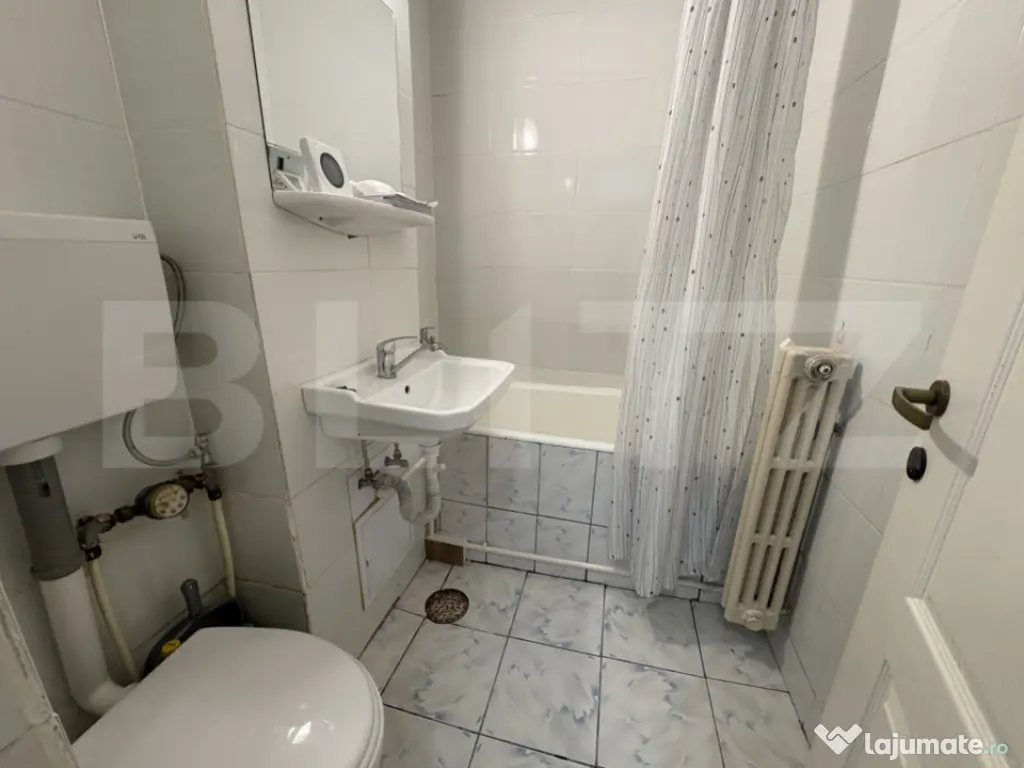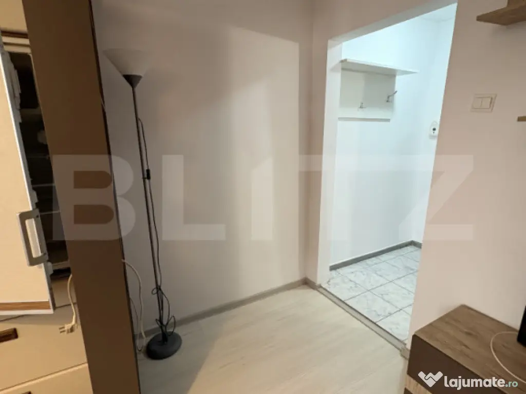 Blitz oferă spre închiriere o garsonieră situată în cartierul Mănăștur, zona străzii Primăverii, la parterul unui imobil nou cu 4 niveluri. Locuința are o suprafață utilă de 22 mp și este ideală pentru o persoană care își dorește un spațiu eficient, bine organizat și ușor de întreținut. Compartimentarea este semidecomandată, iar garsoniera se închiriază complet mobilată și utilată. Totul este nou, ales cu atenție pentru confort și funcționalitate. Dotări: Centrală termică proprie Mașină de spălat rufe Arctic Cuptor Miele Frigider Miele Canapea extensibilă Multiple spații de depozitare Baie cu cadă și sistem de ventilație Zona este bine conectată, cu acces rapid către magazine, stații de autobuz și alte puncte de interes din cartier. Disponibilă imediat. Te așteptăm la vizionare! Cod ofertă / ID BLITZ: P34267 Id intern: P34267 Confort: 1 Tip imobil: Bloc de apartamente