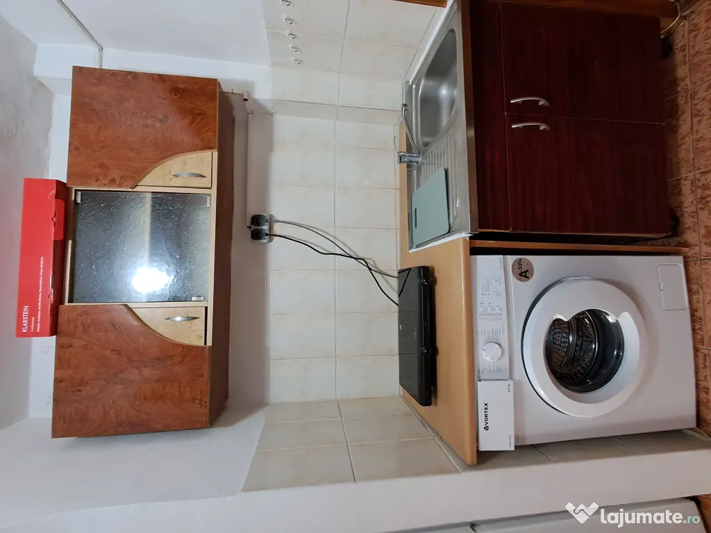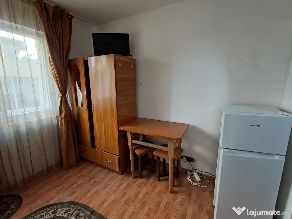 Garsiniera, 20 mp, curata, masina de spalat noua, frigider nou, TV Led, canapea extensibila mare, aspirator, mini-bucatarie deschisa cu plita electrica vitroceramica noua, baie cu cada, facturi mici, la 15 min. mers pe jos de Palas, tel.0744238023