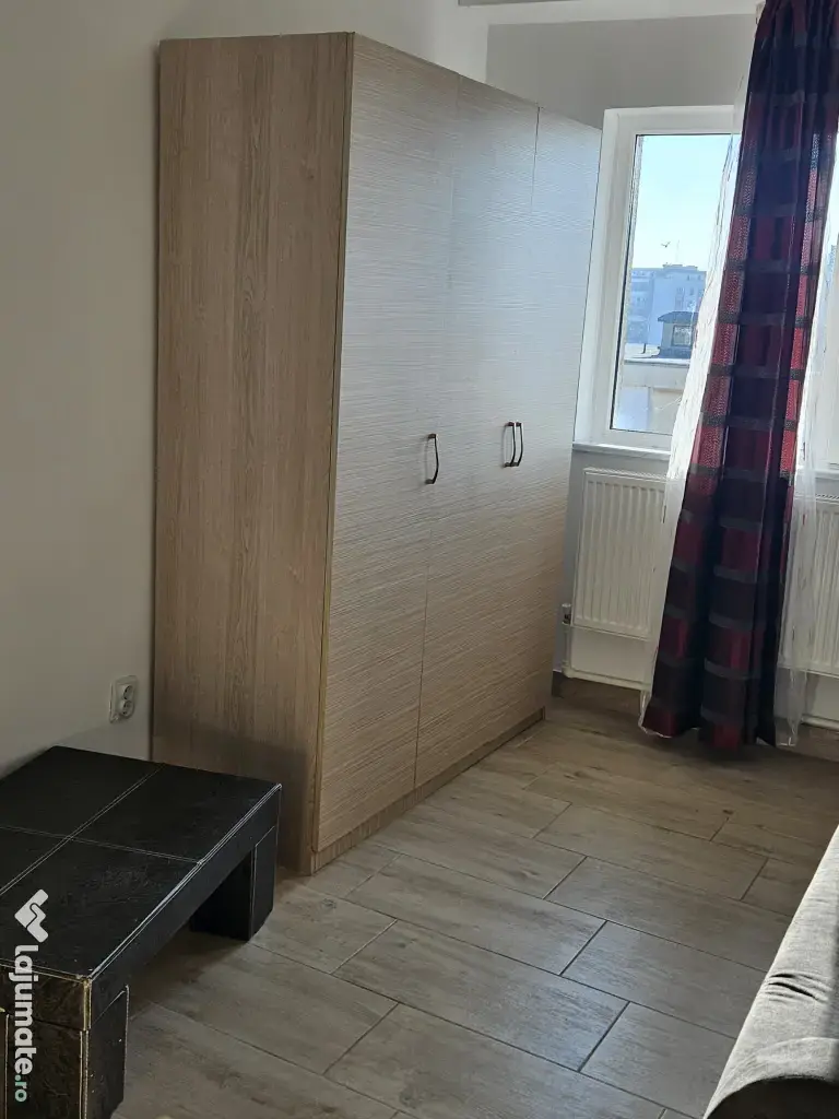 Garsoniera spatioasa: camera mobilata,hol,bucătărie spațioasă cu centrala proprie ,baia este cu duș. Garsoniera se află intr-o scara de apartamente,este mansarda si are 42m patrati. Este locat lângă biserica si stație de autobuz . Cu garantie