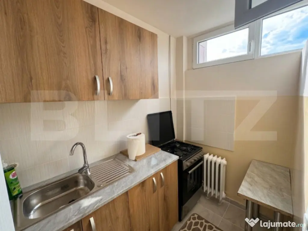 Blitz ofera spre inchiriere o garsoniera moderna, situata in cartierul Marasti, zona Expo — o locatie excelenta, bine conectata la toate punctele importante ale orasului! ✨???? ???? Detalii garsoniera – Suprafata utila: 32 mp – Balcon inchis – Etaj: 3 din 4 – Imobil ingrijit Garsoniera este recent renovata si se afla la prima inchiriere, fiind pregatita pentru a oferi un spatiu confortabil si functional. ✨ Compartimentare & dotari – Camera principala luminoasa, dotata cu canapea extensibila si spatii generoase de depozitare – Bucatarie separata, mobilata si utilata: aragaz, cuptor si multiple spatii de depozitare – Baie dotata cu cada – Balcon inchis, ideal pentru depozitare sau relaxare ???? Avantaje – Garsoniera recent renovata – Prima inchiriere – Spatii bine organizate – Locuinta practica si usor de intretinut ???? Localizare excelenta Situata in zona Expo din Marasti, proprietatea beneficiaza de acces rapid catre mijloace de transport in comun, magazine, restaurante si spatii de recreere, fiind ideala pentru un stil de viata activ si conectat. ???? Programeaza o vizionare si descopera o garsoniera moderna, bine pozitionata si gata de mutat! ✨ Cod ofertă / ID BLITZ: P168083 Id intern: P168083 Confort: 1 Tip imobil: Bloc de apartamente