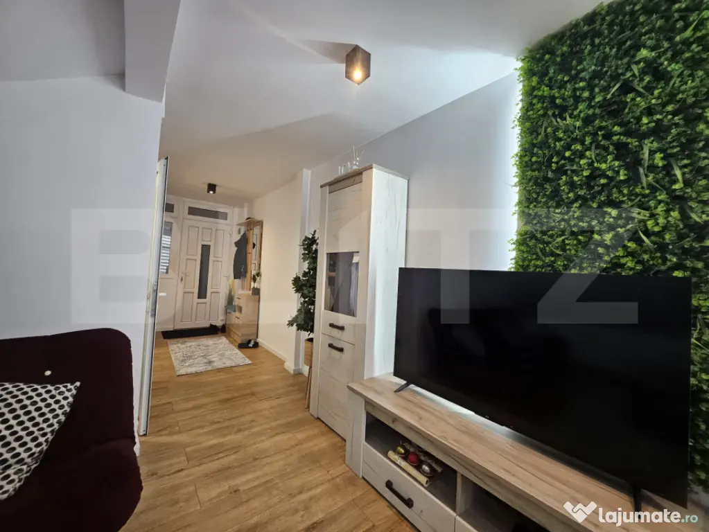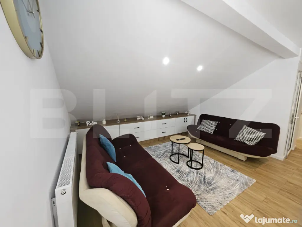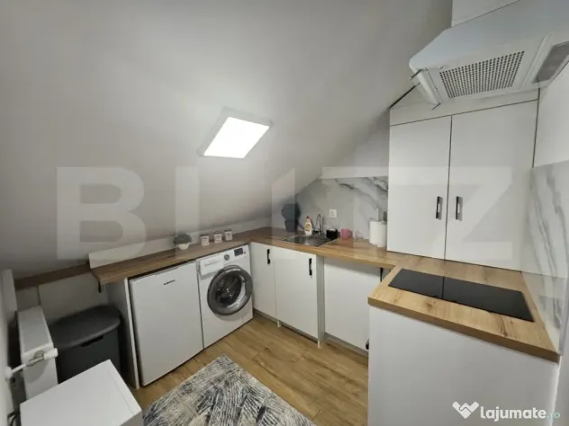 Blitz ofera spre vanzare, un apartament mobilat si utilat, zona Lidl. Apartamentul este amplasat la ultimul etaj al unui bloc din caramida izolat termic la exterior, bloc situat in imediata vecinatate a primariei, dispune de centrala termica proprie, tamplarie PVC cu geam termopan, usa metalica la intrare si este compus din: hol, bucatarie complet utilata, camera si baie. In acte este etaj pod. Pentru mai multe detalii nu ezitati sa ne contactati.