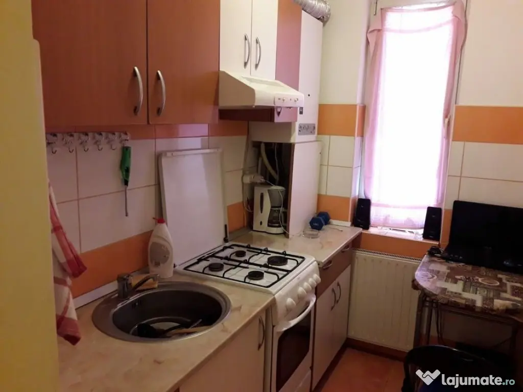Garsoniera situata in zona Garii aproape de Centru . Locuinta este decomandata fiind formata din camera , bucatarie , hol , baie. Complet mobilata , dotata cu :frigider , masina de spalat , internet etc. Suprafata utila 28 mp , etaj 2 Confort: 1 Tip imobil: Bloc de apartamente