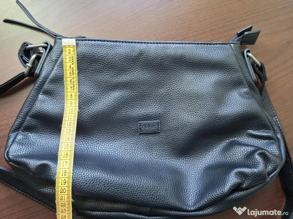 Geanta dama Rieker, neagra, noua, nu a fost purtatat niciodata. Doua compartimente cu fermoar, buzunar interior. Lungime bareta dusa la max este de 140 cm.