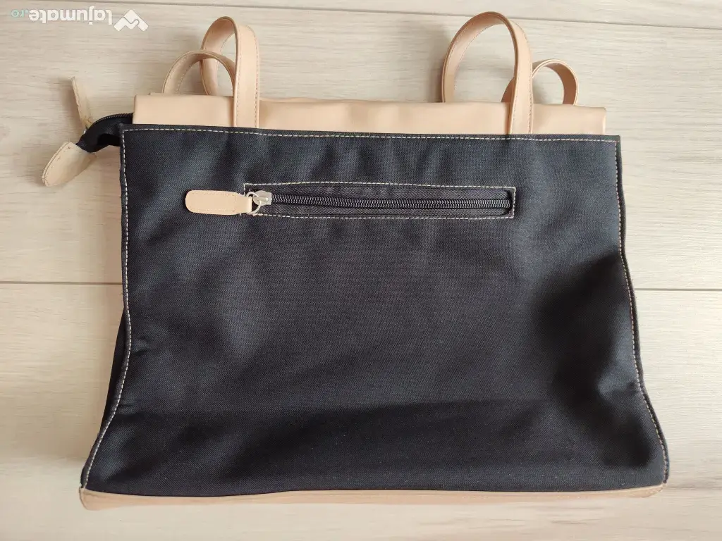 Bretele, fund și margini din piele artificială.