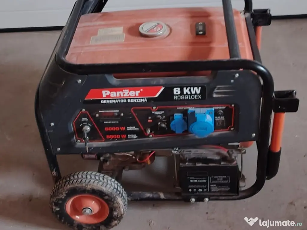 De vanzare Generator de curent electric monofazic, pe benzina, Panzer RD8910EX, 6 kW, 15 CP + AVR, in stare foarte buna. Poate furniza maxim 6500 W pentru a va alimenta cu energie electrica sculele si aparatele electrice sau sistemele de iluminat. Folosit dar ingrijit. Ulei schimbat la fiecare 100 de ore. Dotat cu o priza Schuko, 16 A / 230 V, IP44 si o priza 32 A / 230 V, IP44.