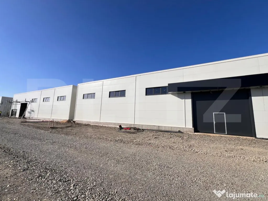 Blitz vă propune spre închiriere un spațiu industrial modern cu birouri, situat în zona Aeroport. Hala are o suprafață totală de 600 mp, birouri in suprafata de 44,78 mp, ce pot fi complet personalizate și compartimentate după cerințele viitorului chiriaș – de la numărul încăperilor până la finisaje și dotări. Compartimentarea include: spațiu deschis de depozitare cu înălțime de 5,25 m la streasina si 7,25 la coama, zonă de birouri flexibilă, cameră tehnică și grup sanitar. Accesul marfă se realizează prin ușă secțională cu ușă pietonală integrată, iar dimensiunile pot fi adaptate în funcție de necesitati. Hala se află în curs de finalizare, cu termen de predare în martie, ceea ce permite personalizări ample atât la interior cât și la exterior: amplasarea birourilor, instalarea sistemelor de încălzire, climatizare, supraîncărcare electrică, zone de recepție sau orice alt tip de amenajare solicitat. Printre facilitățile standard se numără platformă betonată pentru acces și parcare, structură din panouri sandwich, fațade moderne cu placări premium și posibilitatea de a integra orice dotare necesară activității chiriașului. Spațiul este ideal pentru firme care își doresc o hală adaptată exact propriului flux de lucru.