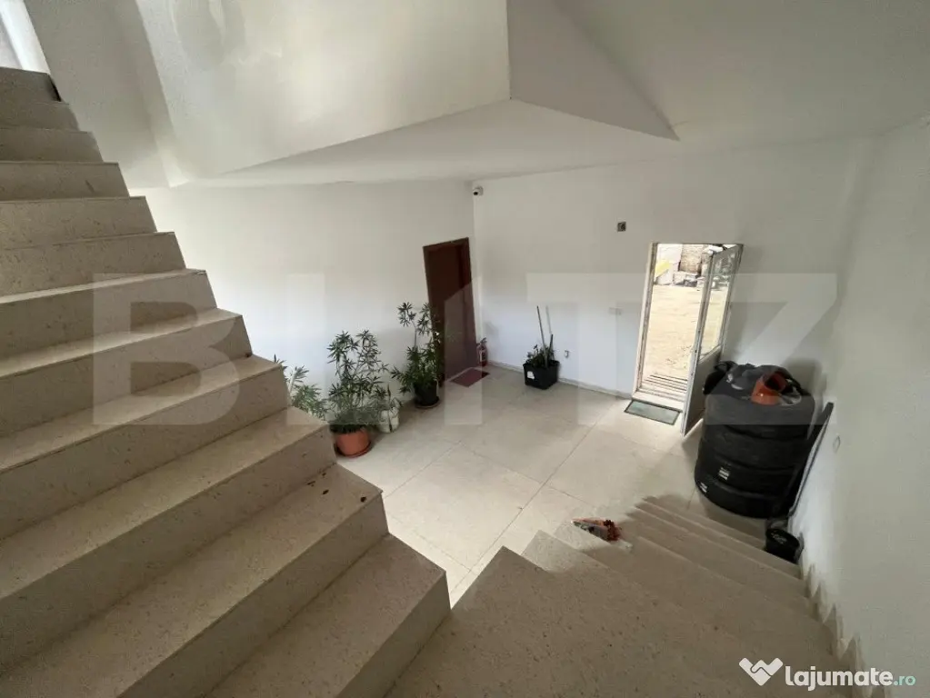 Blitz va propune spre vanzare o hala la 100 m de drumul european, construita in intregime din caramida si beton, prevazuta si cu panouri fotovoltaice si transformator. Constructia este una extrem de solida are o inaltime de aproximativ 9 m, porti culisante pentru accesul cu camionul iar ntreaga suprafata de teren este betonata. Hala are 4 incaperi 3 de productie sau de folosit in alte scopuri si una unde regasim si un birou spatios cu vedere in toate celelalte incaperi, cladirea fiind partial etajata. Aceasta constructie intruneste toate conditiile pentru a va desfasura o activitate de productie, industriala sau comerciala. Pentru mai multe detalii va asteptam la vizionare!