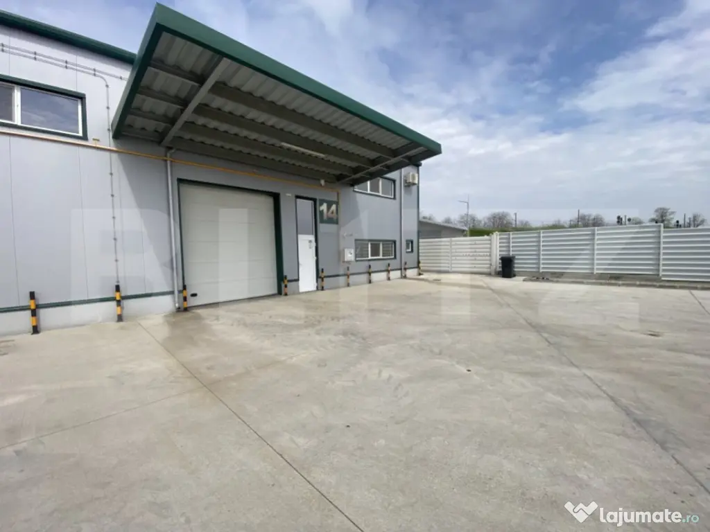 Blitz va propune spre inchiriere un spatiu industrial modern cu birouri situat in zona Ford. Acesta are o suprafata de 600 mp iar compartimentarea este urmatoarea: spatiu deschis depozitare de inaltime mare, 4 birouri, 2 grupuri sanitare. Inaltimea minima este de 6 m, iar inaltimea maxima este de 7,6m. Proprietatea este autorizata ISU. Printre alte facilități se numara podea elicopterizata, usa cu acces tir, incalzire (atat in hala cat si in birouri), aer conditionat in birouri, sistem supraveghere video, instalație electrică de mare putere. Dispune si de platforma betonata pentru parcare de 1000 mp. Cod ofertă / ID BLITZ: P97797 Id intern: P97797 Suprafaţă totală: 600 m² Suprafaţă birouri: 2 m² Stadiu construcţie: Finalizat Nr. locuri parcare: 2 Tip imobil: Alte tipuri