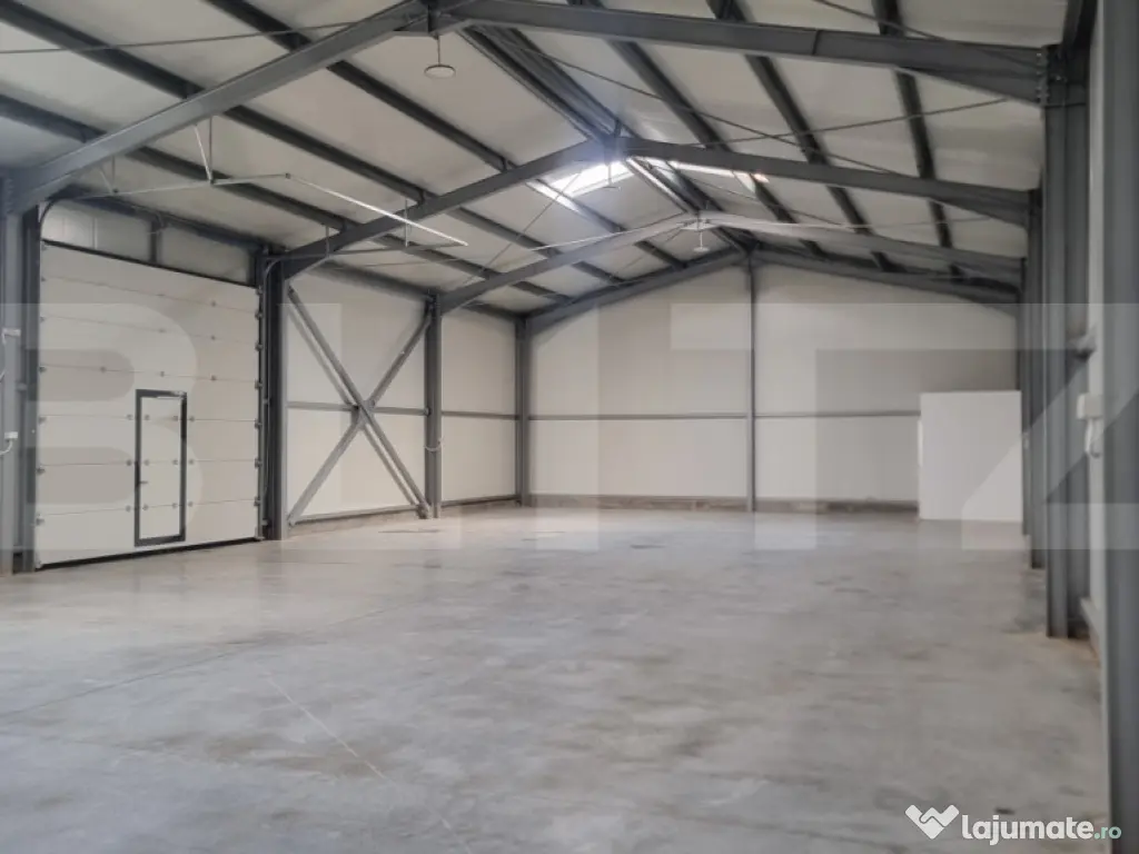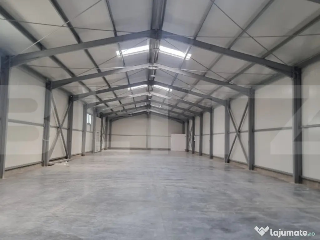 BLITZ va oferă spre inchiriere hala noua si moderna,construita in 2026 cu o suprafață de 600 mp. Este construită pe un teren de 2000 mp cu platforma betonata ,proiectata pentru preluarea traficului greu. Utilitati: apă, electricitate și fosă septică proprie. Are o inaltime de 6,5 metri, lățime de 11,5m și lungime de 49 de metri. Hala are spatii de birouri si grup sanitar independent.Locatia are zona de parcare betonata și este imprejmuita cu gard de protectie.Accesul TIR se face pe drum asfaltat . Zona este în plină dezvoltare și expansiun avand acces facil la autostrada A3,DN1a si DN 1.. Este ideală pentru activități comerciale, spațiu de depozitare, fabrică de producție.Va asteptam la vizionare Cod ofertă / ID BLITZ: P167616 Id intern: P167616 Suprafaţă totală: 600 m² Suprafaţă birouri: 2 m² An finalizare construcție: 2026 Stadiu construcţie: Finalizat Nr. locuri parcare: 10-20 Tip imobil: Alte tipuri