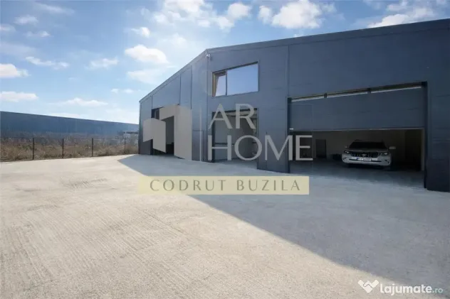 Are o suprafata utila de 250mp, doua compartimente a cate 120 m2 mezanin 30 m2, structura pe cadre metalice si panouri sandwich de 10 cm.Accesul se face din drumul asfaltat.