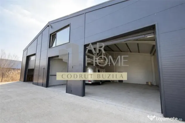 Dotari: platforma betonata, 2 grupuri sanitare, tamplarie PVC cu geam termopan, conexiune la internet, supraveghere video. Usile de acces auto sunt electrice si au dimensiunile urmatoare: 3000x3500, 3000x3000, 3000 x 4000.