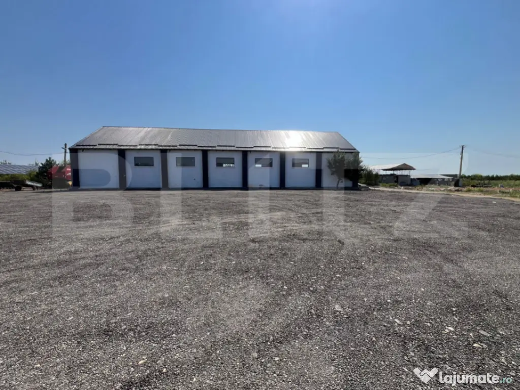 Oferim spre închiriere hală industrială cu suprafața de 370 mp, situată pe DN72 – Suta Seaca, într-o zonă cu acces rapid și vizibilitate foarte bună. Proprietatea include un teren generos de aproximativ 10.000 mp, din care 5.000 mp sunt direct utilizabili în jurul halei – ideal pentru circulația sau parcarea camioanelor, depozitare exterioară sau extindere activitate. Caracteristici hală: Construcție solidă din cărămidă, recent renovată Acoperiș nou din țiglă metalică Uși și ferestre termopan pentru eficiență termică Grup sanitar inclus Alimentare trifazică – curent 380V Rampă betonată pentru descărcare camioane / TIR-uri Macara exterioară + macara fixă de 8 t pe lanț – perfectă pentru manipularea încărcăturilor grele Sistem de supraveghere video Curte închisă, securizată, cu acces auto de mare tonaj Teren exterior: Aproximativ 10.000 mp, cu 5.000 mp utilizabili direct Spațiu suficient pentru manevre camioane, containere, stocare materiale Servicii opționale (contra cost): Manipulare marfă cu stivuitor și încărcător frontal disponibile la cerere Bonus – disponibilitate extinsă: Posibilitate închiriere suplimentară a unei a doua hale de 300 mp aflate pe aceeași proprietate Ideal pentru: activități de producție, logistică, depozitare, service utilaje grele, stație betoane, parc auto etc. Disponibil imediat | Acces facil | Condiții flexibile de închiriere! Cod ofertă / ID BLITZ: P149738 Id intern: P149738 An finalizare construcție: 2024 Stadiu construcţie: Finalizat Tip imobil: Alte tipuri