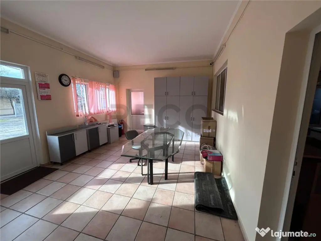 Reco Imobiliare ofera spre vanzare proprietate industriala situata in Marghita, in zona industriala, cu acces facil si front stradal generos de aproximativ 100 m. Accesul in curte se face prin poarta electrica. Proprietatea este amplasata pe un teren cu suprafata de 3479 mp. Pe teren se afla o hala industriala cu suprafata utila de aproximativ 650 mp, construita pentru activitati de productie sau depozitare. In curte mai exista o cladire mai noua, cu suprafata utila de aproximativ 200 mp, care a fost folosita ca spatiu de birouri. Aceasta este mobilata si utilata, fiind pregatita pentru utilizare imediata. Pe proprietate se mai gasesc si mai multe anexe, inclusiv spatiu de luat masa pentru angajati si diferite spatii de depozitare, ceea ce face ca imobilul sa fie foarte practic pentru activitati industriale sau logistice. In trecut, in aceasta locatie a functionat o fabrica de incaltaminte. Atat hala, cat si spatiul de birouri sunt in stare foarte buna. Toate utilitatile sunt prezente in cladiri: apa, canalizare, gaz si curent electric. Incalzirea este realizata prin mai multe centrale pe gaz. Proprietatea este potrivita pentru productie, depozitare, logistica sau alte activitati industriale. Pentru mai multe informatii sau pentru programarea unei vizionari, va rugam sa ne contactati 0376 443 700 Suprafaţă totală: 1000 m² Suprafaţă birouri: 850 m² An finalizare construcție: 1980 Stadiu construcţie: Finalizat Înălţime spaţiu: 3 m Tip imobil: Producţie/Servicii