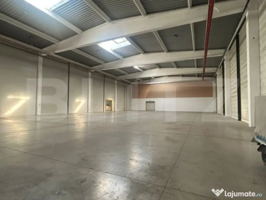 Vă propunem spre vânzare o proprietate industrială modernă, situată într-o zonă cu acces facil, ideală pentru activități logistice, producție sau depozitare. Suprafața totală construită este de 3.045 mp, împărțită în două compartimente: Compartiment 1: 1.895 mp (63,17 x 30 m) Compartiment 2: 1.150 mp (36,83 x 30 m) Compartimente rezistente la foc (perete antifoc REI 180 și ușă antifoc) Acces logistic optim: 2 porți de acces pentru utilaje de gabarit mare 2 porți de andocare cu rampă și burduf Facilități și infrastructură: Puț de apă (foraj autorizat, adâncime 150 m, D=110 mm) Branșament gaz (capacitate 45 mc/h) Încălzire: tuburi radiante + 2 generatoare (500 KW total) Iluminat LED eficient Decantor ape uzate (capacitate pentru 30 persoane) Securitate și protecție la incendiu: Rețea hidranți exteriori Proiect avizare: sistem sprinklere + rezervor propriu incendiu Trape de fum (ventilație zilnică 1%) și luminatoare fixe (4%) Alte dotări: Platforme betonate și zone verzi amenajate Acces facil pentru camioane, spații pietruite pentru manevră și parcare Proprietatea oferă condiții excelente pentru desfășurarea activităților industriale și logistice, fiind pregătită pentru operare imediată. Cod ofertă / ID BLITZ: P146480 Id intern: P146480 Suprafaţă totală: 3000 m² Suprafaţă birouri: 2 m² An finalizare construcție: 2010 Stadiu construcţie: Finalizat Tip imobil: Alte tipuri