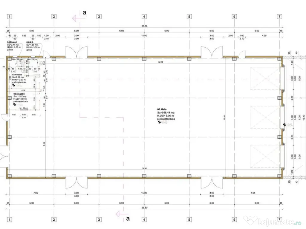 ATENTIE! PROPRIETATE VÂNDUTĂ. Hală industrială disponibilă spre vânzare, ideală pentru activități de producție și depozitare. (fără comision) Imobilul este compus din: 1. TEREN total 2438 mp, din care: 600 mp sub hală, 1.000 mp platformă pavată 838 mp teren sub linia LEA, 2. HALĂ: suprafață construită 598 mp Localizare: Parcul Industrial UTA 2, Arad, Strada Ovidiu Nr.1 An construcție: 2022 Înălțime utilă: 6m Suprafață construită: 598 mp Suprafață utilă: 576 mp Birou: 11 mp Vestiar cu dușuri: 13 mp Grup Sanitar: 5 mp Andocare (dock încărcare TIR cu rampă): 1 buc (cu posibilitate de extindere de până la 3 buc) Pentru vizionare și detalii apelați 0721356746. Florin Moș ACASĂ | Agenție imobiliară Arad Bulevardul Decebal 2, Arad 310133 0724 200 000 Suprafaţă totală: 576 m² Suprafaţă birouri: 11 m² An finalizare construcție: 2022 Stadiu construcţie: Finalizat Înălţime spaţiu: 6.0 m Număr încăperi: 1 Număr Grupuri Sanitare: 2 Producție Depozitare Acces: Acces TIR Posibilitate parcare: Da Nr. locuri parcare: 10-20 Tip imobil: Alte tipuri