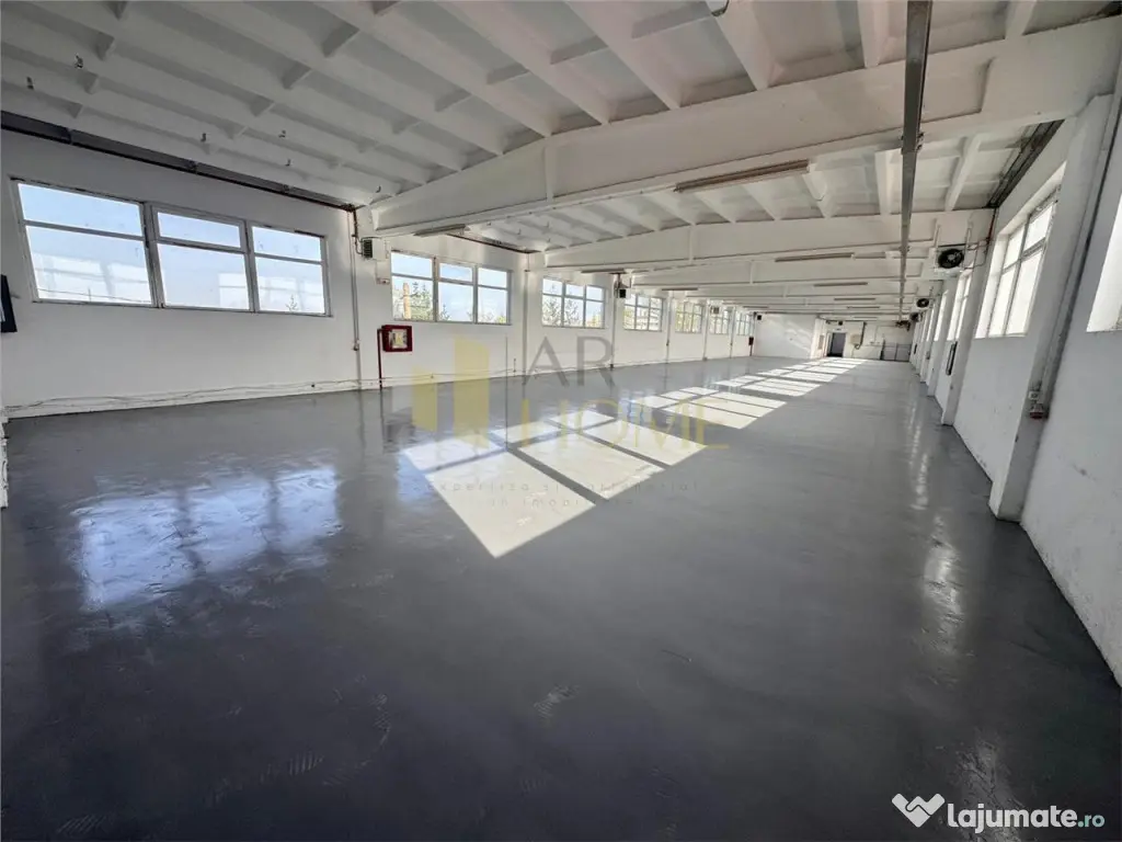 Hala industriala P 1E, 1646 mp, Ploiesti, Mihai Bravu, acces tir. Inchiriere hala industriala, in Ploiesti, zona Mihai Bravu. Imobilul face parte dintr- o platforma industriala imprejmuita cu gard si cu acces tir, avand ca vecinatati mijloc de transport in comun, Lukoil, centura de Est etc. Este construita in anul 1970, pe cadre de beton cu plansee de beton si are o suprafata utila de 1646 mp dispusi pe parter 883 mp, h 4,5 m si etaj 763 mp, h 3,5 m. Terenul are o suprafata de 2000 mp. Dotari: curte betonata, panouri fotovoltaice 49 kv, 2 scari catre etaj, birouri, elevator, 4 centrale proprii pe gaz, sapa elicopterizata, vopsea lavabila, tamplarie PVC cu geam termopan, 2 usi tir etc. Utilitati: apa, gaz, curent 380V cu putere instalata de 100 KV, canalizare. Pret: 3990 euro. Suprafaţă totală: 1800 m² An finalizare construcție: 1970 Vitrină: 10 m Stadiu construcţie: Finalizat Înălţime spaţiu: 3 m Număr încăperi: 5 Număr Grupuri Sanitare: 4 Posibilitate parcare: Da Nr. locuri parcare: 5-10 Tip imobil: Centru comercial