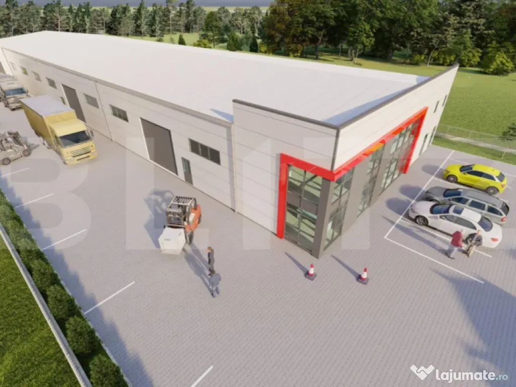 Hală industrială de închiriat – suprafață 1.658 mp, birouri mezanin, rampă andocare, acces TIR Vă oferim spre închiriere o hală nouă, cu predare în acest an, ideală pentru activități de depozitare, logistică sau producție ușoară. Caracteristici principale: • Suprafață utilă hală: 1.458 mp • Birouri amenajate la parter si mezanin- 200 mp • Structură metalică modernă, deschidere liberă de 20 m • Înălțime la coamă: 7,3 m | Înălțime la streașină: 6 m • Rampă de andocare + acces direct pentru TIR în curte • 18 locuri de parcare pentru autoturisme • Teren aferent: 3.345 mp • Dotări: aviz ISU, apă, gaz, curent electric Beneficii: ✔ Construcție nouă, livrare în 2025 ✔ Acces facil pentru transport și logistică ✔ Spații de birouri integrate, optimizate pentru activitate administrativă ✔ Curte generoasă, cu zone de manevră pentru TIR și parcări auto Cod ofertă / ID BLITZ: P153274 Id intern: P153274 Suprafaţă totală: 1579 m² Suprafaţă birouri: 2 m² An finalizare construcție: 2025 Stadiu construcţie: De renovat Nr. locuri parcare: 10-20 Tip imobil: Alte tipuri