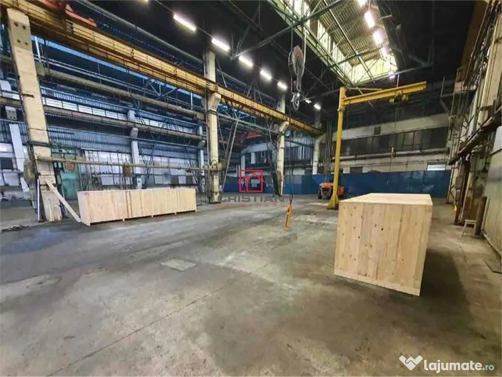 Inchiriere hala/depozit/spatiu industrial Brasov - Tractorul, Brasov. Imobil compus din hala suprafata 5.000mp, dispusa pe parter, inaltime 10ml. Imobilul este construit in anii 1980. Spatiul este construit din structura beton si zidarie/perete cortina, compartimentare open space, beneficiaza de 5 poduri rulante functionale. Spatiul dispune de facilitati: apa, canalizare, gaze, curent electric 220 ndash; 380kw, putere mare instalata. Spatiul se preteaza pentru activitati industriale/productie/depozitare. Spatiul dispune de locuri de parcare in curte. Disponibil imediat. Pret ndash; 18.500euro/luna tva COMISION AGENTIE 50-100% din prima luna de chirie Suprafaţă totală: 5000 m² Suprafaţă birouri: 5000 m² An finalizare construcție: 1980 Stadiu construcţie: Finalizat Înălţime spaţiu: 3 m Număr încăperi: 1 Număr Grupuri Sanitare: 4 Tip imobil: Producţie/Servicii