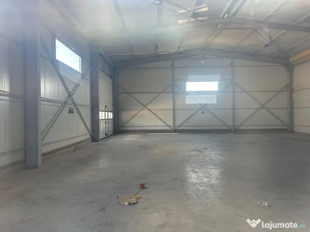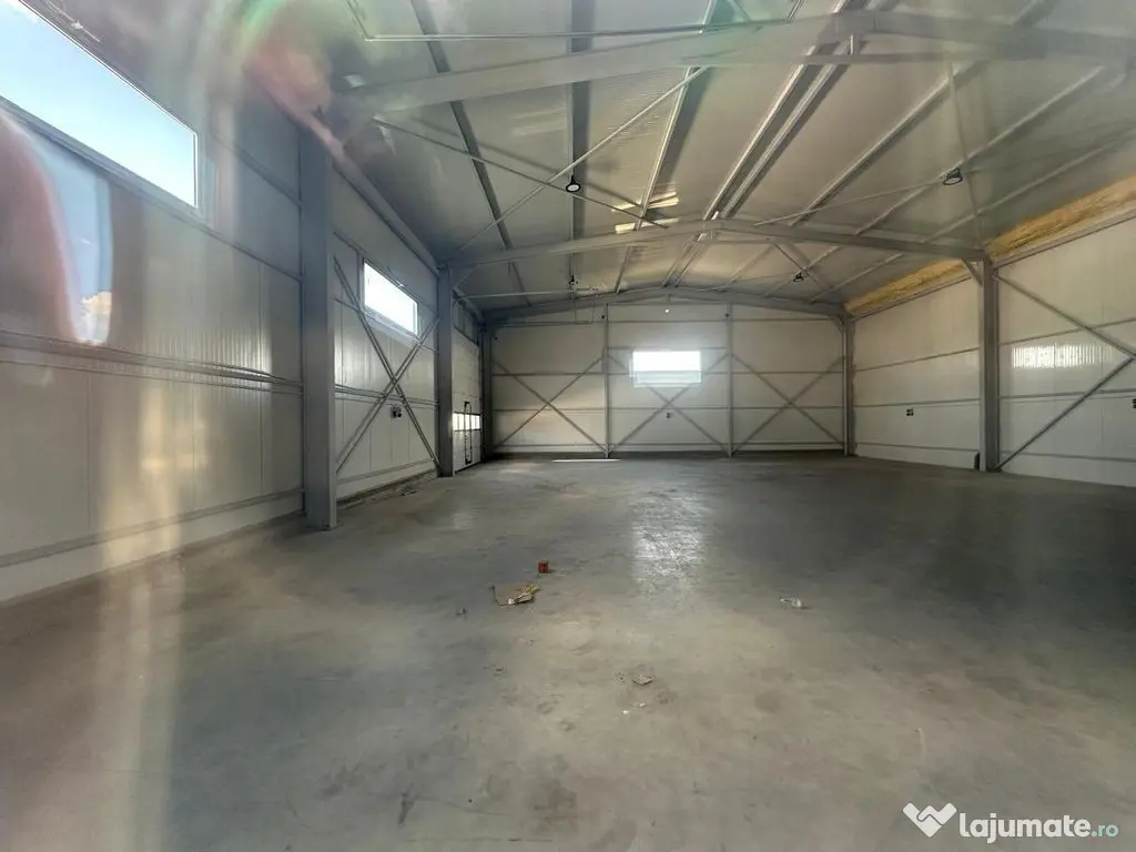 Complex hale -hale in suprafata de 444 mp,hala 384 mp + birouri 60 mp ( 2 toalete + 2 birouri ), teren 750 mp,curent trifazic,internet,paza,platforma betonata,vopsea epoxidica agreat DSV, 2 usi mari acces,,acces TIR,langa Centura Bucuresti . Suprafaţă totală: 444 m² Suprafaţă birouri: 60 m² An finalizare construcție: 2025 Stadiu construcţie: Finalizat Înălţime spaţiu: 6.5 m Număr încăperi: 1 Număr Grupuri Sanitare: 2 Comercial Industrial Acces: Acces TIR Posibilitate parcare: Da Nr. locuri parcare: 5-10 Tip imobil: Alte tipuri