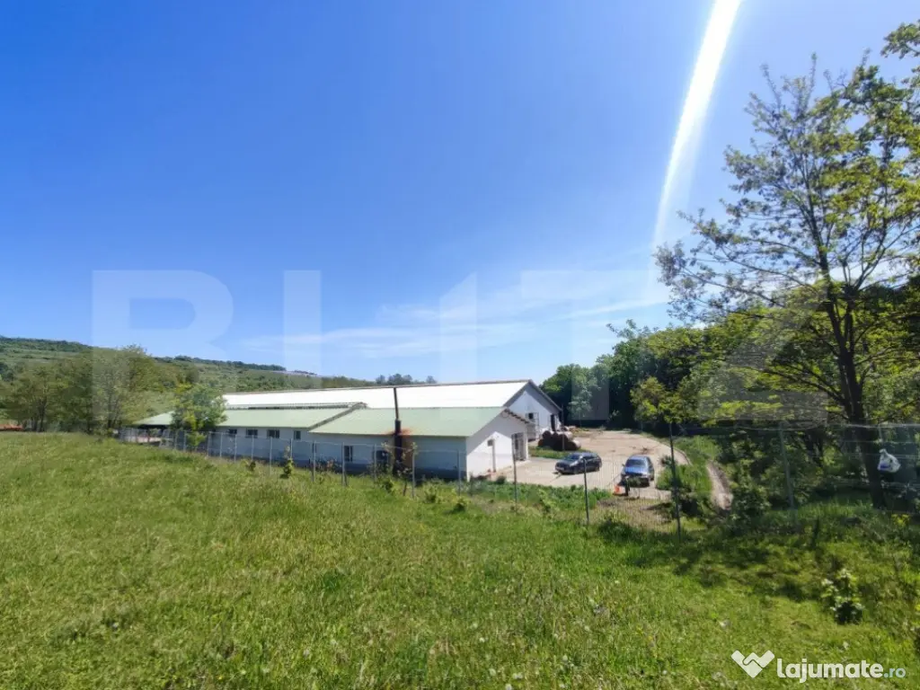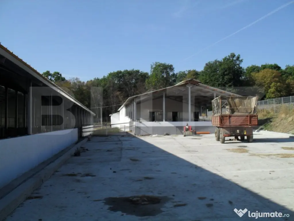 Blitz Imobiliare este încântată să prezinte o proprietate excepțională, situată în Dej, pe strada Valea Jichișului, într-o zonă superbă, la doar 450 de metri de cea mai apropiată locuință, oferind intimitate și liniște absolută. Această proprietate vastă, întinsă pe 1.2 hectare, este înconjurată cu gard, este accesibilă prin drumuri betonate. Caracteristici Principale: Suprafață: Proprietatea se întinde pe 1.2 hectare de teren bine amenajat, cu potențial enorm pentru diverse utilizări. Construcții: Dispune de două hale spațioase, cu suprafețe de 2490 mp și, respectiv, 634 mp, oferind spațiu generos pentru diverse activități și proiecte. Bazine din Beton: Proprietatea include două bazine din beton, fiecare având un volum de 2500 mc, oferind resurse importante pentru diverse operațiuni sau proiecte. Teren închiriat: În jurul proprietății, este închiriat un teren de 30 hectare, inclusiv o zonă de pășune și un lac, oferind potențial pentru activități agricole, recreaționale sau alte proiecte. Destinație Inițială: Proprietatea a fost inițial destinată unei ferme de vaci și producție de biogaz, însă datorită poziționării sale ideale și a potențialului său extins, poate fi utilizată în diverse scopuri. Locație: Proprietatea este situată la doar câțiva kilometri de centrul orașului Dej, beneficiind de acces ușor la facilitățile și serviciile locale. Poziționare Ideală: Zona înconjurată de pădure oferă o oportunitate unică pentru cei interesați să închirieze teren forestier de la stat, extinzând potențialul proprietății și diversificând opțiunile de utilizare. Această proprietate impresionantă reprezintă o oportunitate unică pentru investitori și dezvoltatori interesați să exploreze potențialul său vast. Pentru mai multe informații sau pentru a programa o vizionare exclusivă, vă rugăm să contactați echipa Blitz Imobiliare. Cod ofertă / ID BLITZ: P106784 Id intern: P106784 Suprafaţă totală: 3000 m² Suprafaţă birouri: 2 m² Stadiu construcţie: Finalizat Nr. locuri parcare: 5-10 Tip imobil: Alte tipuri