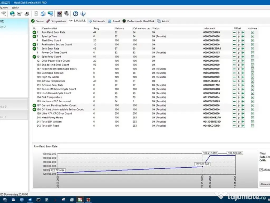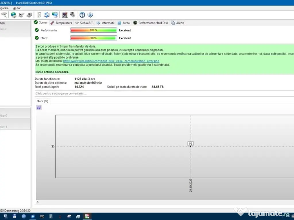 Hard Disk Sentinel zice la una ca starea e 100%, la cealalta 98%. Nu stiu de ce, in SMART ambele is perfecte. Niciunul nu prezinta bad-uri.