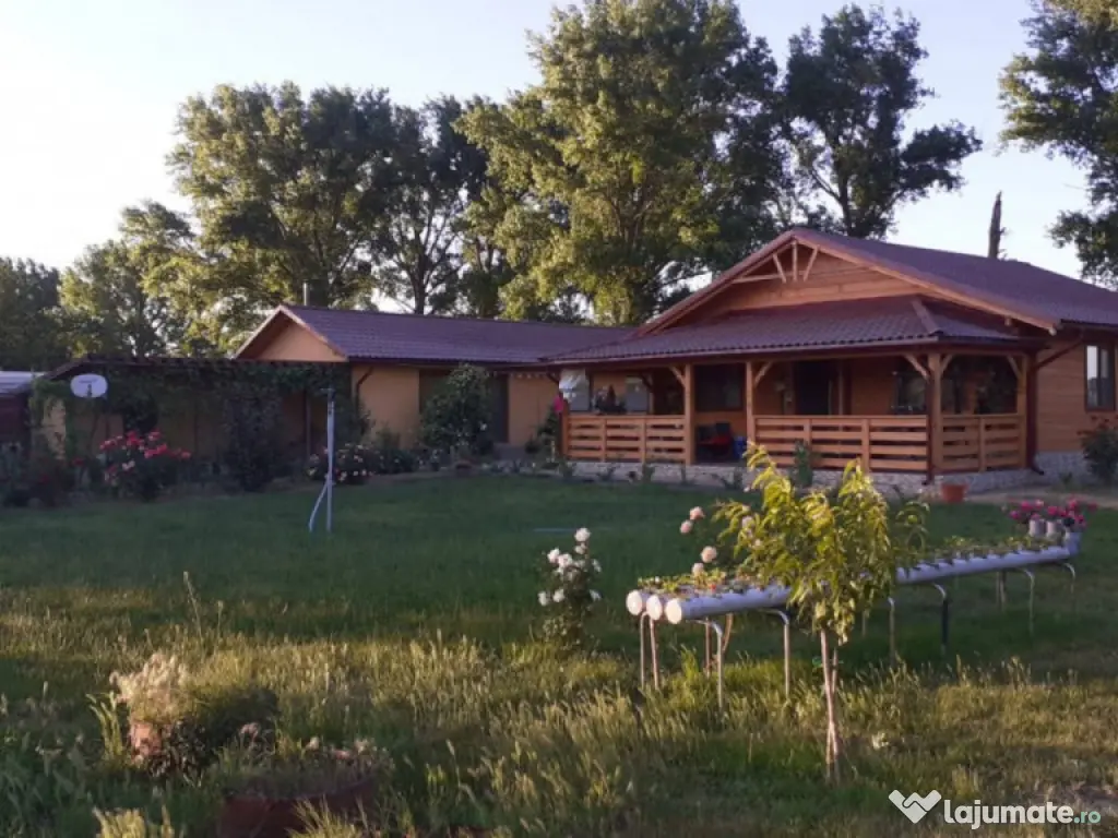 Dobrogea Imobiliare va prezinta spre vânzare o casa de lemn cu deschidere directa la lac de 43m, construita în anul 2021 în localitatea Horia, județul Tulcea cu suprafață teren 3000mp. Locuința se afla la 1.5km de sat pe marginea lacului și are si proiect cu toate aprobările pentru microferma piscicolă. Casa este construita din structura de lemn de 10cm (brad+pin, foarte calduroasa iarna si racoroasa vara) cu o suprafață de 100mp și o terasa acoperita de 27mp, dispune de 2 dormitoare, living cu bucatarie, hol, 1 baie mare cu cada și una cu duș și pod utilizabil. Casa are încălzire prin centrala pe lemne cu calorifere de aluminiu, usa si geamuri de termopan, gresie, faianță, parchet, aer condiționat, apa calda prin panou solar și boiler electric (pe timp de iarna, apa calda vine de la centrala), supraveghere video și sonerie la poartă. Anexe construite în curte sunt o bucătărie de vara complet mobilata și utilata cu cămară (încălzire pe soba cu lemne), garaj, magazie de lemne, magazie de cereale, anexe pentru păsări și heleșteu în curte, hidrofor, 2 fose septice și 2 fântâni. Toată suprafața terenului este delimitata de garduri și dispune de pomi fructiferi, gradina amenajata cu legume, curte cu gazon și trotuare cu acces facil către orice anexă. Intrarea pe teren se face de la șosea pe o alee betonata și acoperita de o bolta de vita de vie. Energie electrică disponibila, internet și televiziune, casa se vinde semi mobilata sau la înțelegere cu persoanele interesate. Este o zona linistita cu acces rapid către Tulcea, Constanța, Măcin, Isaccea/Brăila/Galați. Prețul este de 101.000 euro negociabil. Terenul în zona se vinde la prețul de 20 euro mp. Va așteptam la vizionare! Ne puteți vizita la sediul nostru situat pe str. Pacii, nr. 6 (la parterul hotelului Select) pentru consultanta gratuita Pentru mai multe oferte vizitați site-ul www.Dobrogea-Imobiliare.ro sau pagina https://www.facebook.com/agentia.dobrogea.9 Id intern: P2175 Număr Băi: 2 Comision cumpărător: 2% Climă Apă Curent