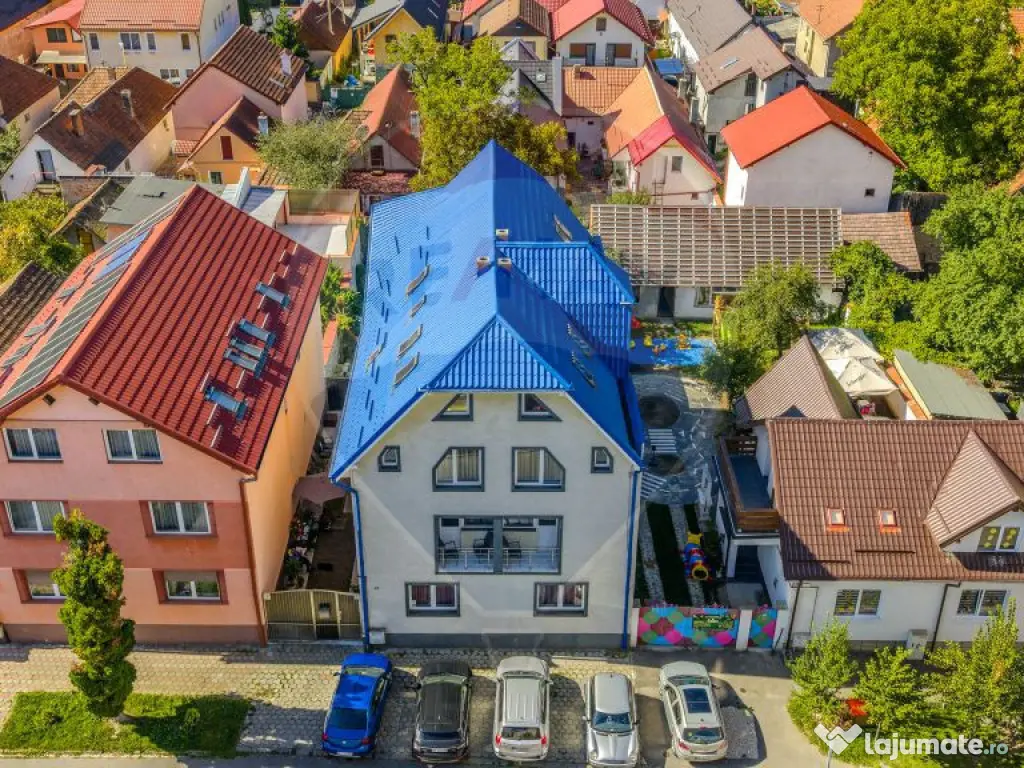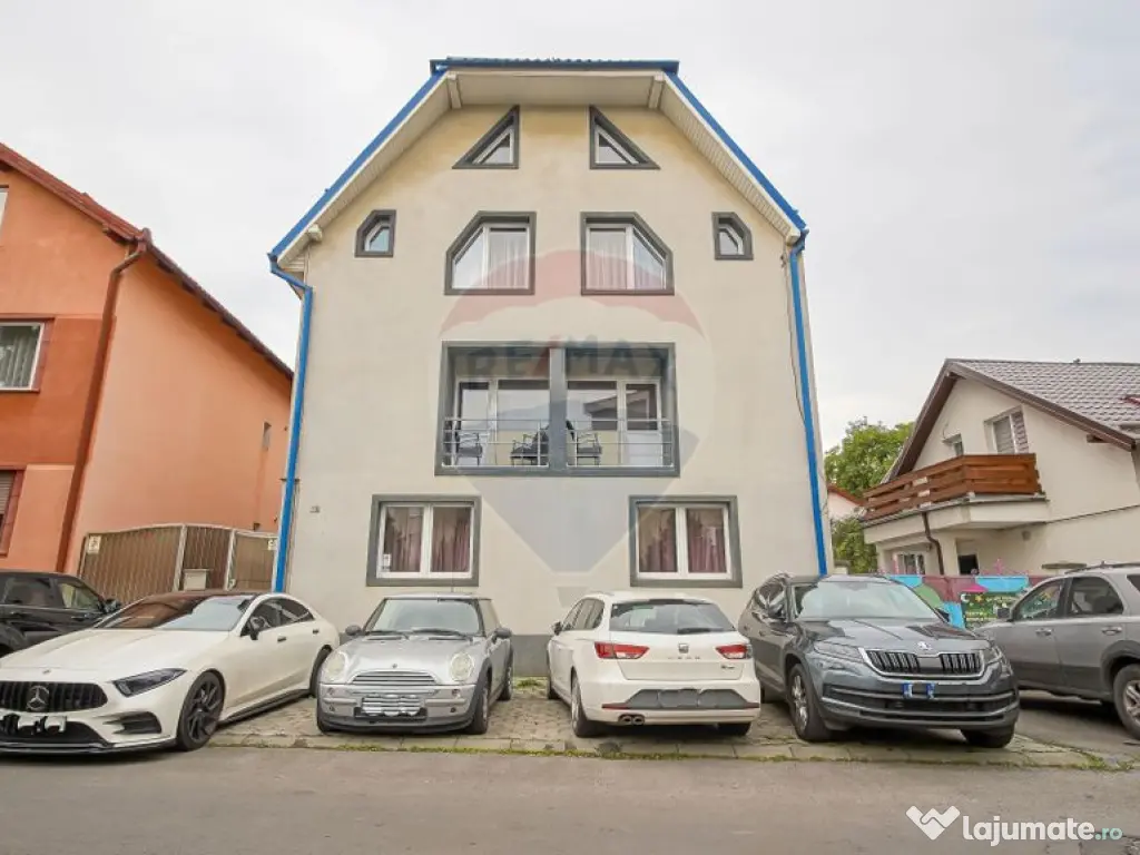 Pensiune de vânzare în Brașov – Oportunitate de investiție turistică Strada Tomis, nr. 12 Pe o arteră selectă a Brașovului, aproape de Spitalul Județean, cu acces rapid la Mall AFI (10 min) și centrul istoric (30 min), se află fosta pensiune Monik – un reper al eleganței și confortului în turismul brașovean. Construită în 2011, cu 14 camere, suprafață construită de 534 mp, suprafață utilă de 445 mp și teren de 432 mp, proprietatea combină finisaje moderne și rafinate cu o funcționalitate gândită să asigure o experiență memorabilă pentru oaspeți. Descriere detaliată Subsol – 35 mp Două pivnițe atent compartimentate, perfecte pentru depozitare și logistică, asigurând buna funcționare a pensiunii. Parter – 129 mp Inima proprietății: un living clasic, bucătărie complet utilată, baie și apartament de 26 mp, ideal pentru personal sau oaspeți ce caută intimitate. Camera centralei de 15 mp completează funcționalitatea, asigurând întreținerea optimă a clădirii. Etaj 1 – 110 mp Două camere de cazare cu băi și balcoane proprii și alte două camere cu baie proprie și terasă comună de 9 mp, unde oaspeții se pot bucura de aer liber și priveliști încântătoare. Nivelul combină confortul intim cu atmosfera activă a unei pensiuni premium. Etaj 2 – 102 mp Patru camere de cazare luminoase, fiecare cu baie proprie și terasă comună de 11 mp, cu finisaje moderne și spațiu optimizat pentru relaxare și confort. Mansardă – 69 mp Trei camere de cazare cu băi proprii, oferind intimitate și flexibilitate pentru extinderea capacității de cazare. Avantaje suplimentare Proprietate complet mobilată, gata de funcționare Acces facil la transport și principalele puncte de interes Terase și spații exterioare pentru relaxare Potențial ridicat de investiție în turismul brașovean Pensiunea nu este doar o clădire; este o destinație, un loc unde rafinamentul și confortul se împletesc, oferind o experiență unică oaspeților și un randament sigur investitorilor. An finalizare construcție: 2011 Stadiu construcţie: Finalizat Număr încăperi: 14 Posibilitate parcare: Da Nr. locuri parcare: 3