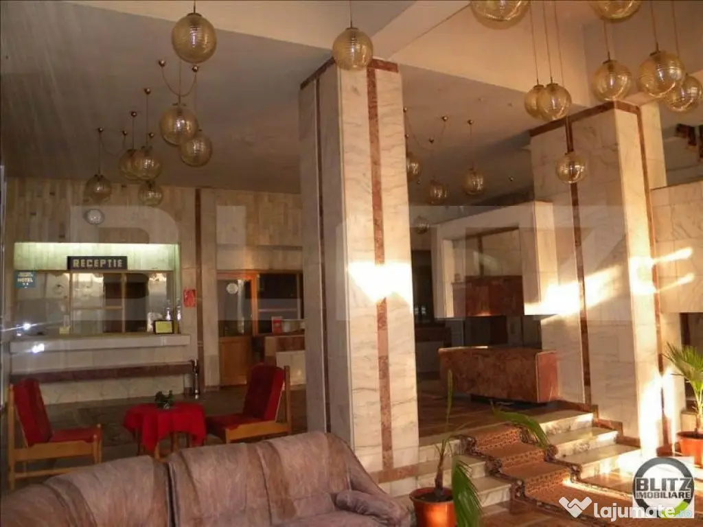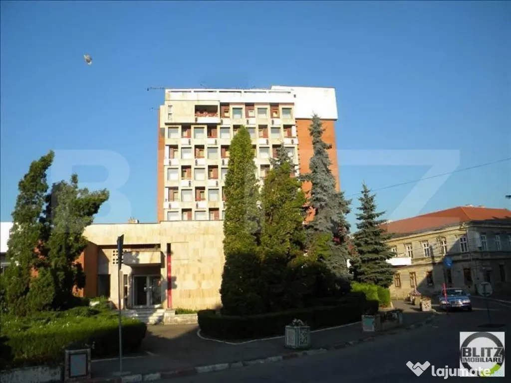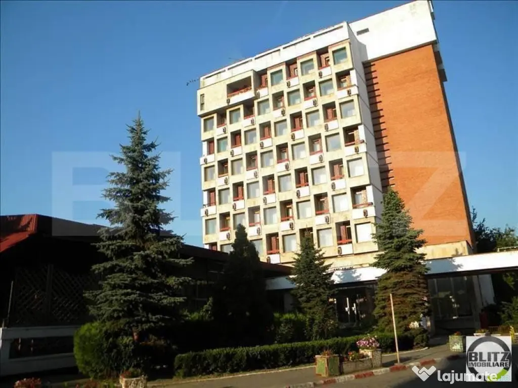 Cladire de referinta la intersectie de drumuri, Hotelul Somesul constituie un avantaj major, atat prin importanta lui cat si prin posibilitati si perspective. BLITZ IMOBILIARE va ofera inspre vanzare cea mai inalta cladire din orasul Dej, Hotel Somesul, pozitionat in zona ultracentrala. Fiind unul dintre punctele de interes maxim al Dejului, cladire de referinta la interectie de drumuri, Hotelul Somesul constituie un avantaj major, atat prin importanta lui cat si prin posibilitati si perspective.. Cu o suprafata utila de 4800 mp, dispus pe mai multe nivele D + P + 7 Etj + Etj tehnic., hotelul este dotat cu 65 de camere cu baie fiecare, 5 apartamente, 1 restaurant de 200 de locuri, 1 terasa de 100 de locuri, 2 saloane selecte, 1 receptie. Terenul pe care este amplasata constructia are o suprafata de 3700 mp. Hotelul face parte din proiectul ART MALL DEJ , primul mall din oras, cladirea care va inconjura in mare parte hotelul cu acces si intrari din complexul comercial direct in hotel. ART MALL , este prevazut sa aiba o suprafata de cca 10.000 de mp. acesta, putandu-se construi in regie proprie sau fonduri externe. Deasemenea , exista posibilitatea de schimbare a destinatiei hotelului, putandu-se identifica multiple alte variante si optiuni de functionare. Orasul Dej este intr-o continua transformare si crestere economica, zona turistica crescand accelerat. Cod ofertă / ID BLITZ: P126243 Id intern: P126243 Stadiu construcţie: Finalizat Tip imobil: Bloc de apartamente
