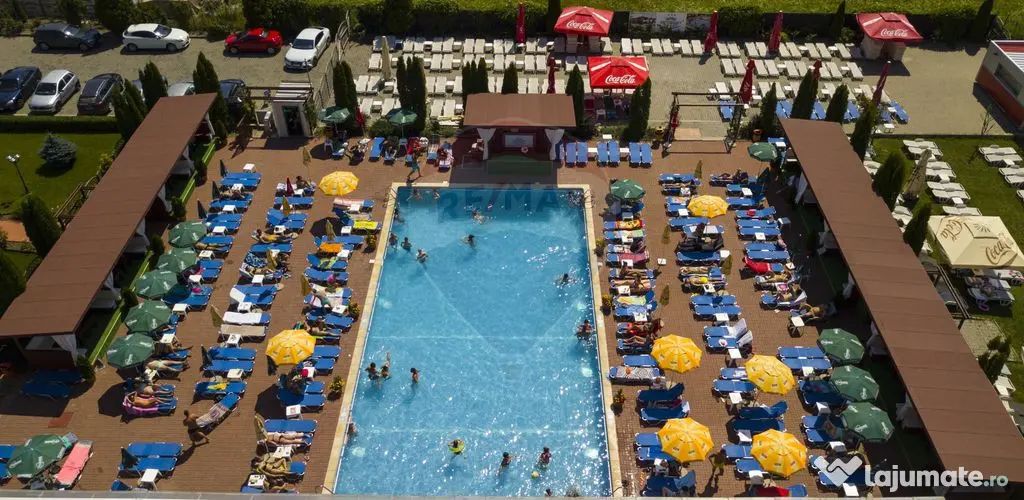 - Piscină mare, cu o capacitate de aproximativ 400 de șezlonguri si o amprenta la sol de 216 mp;