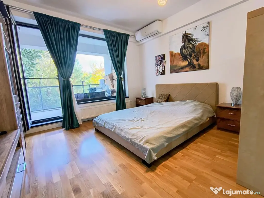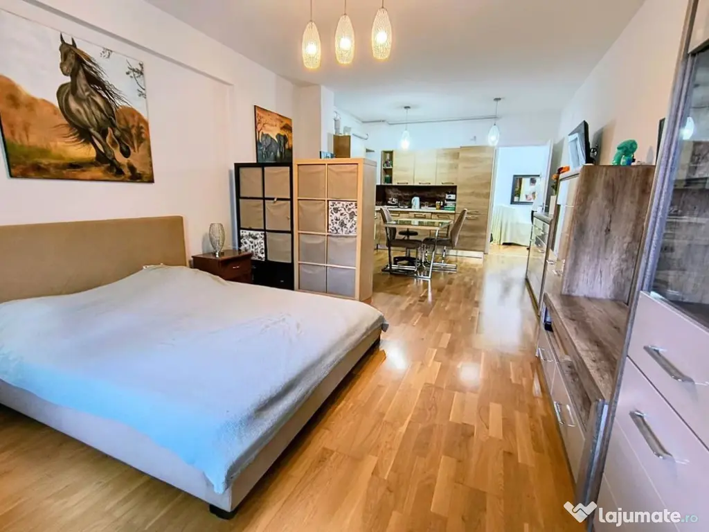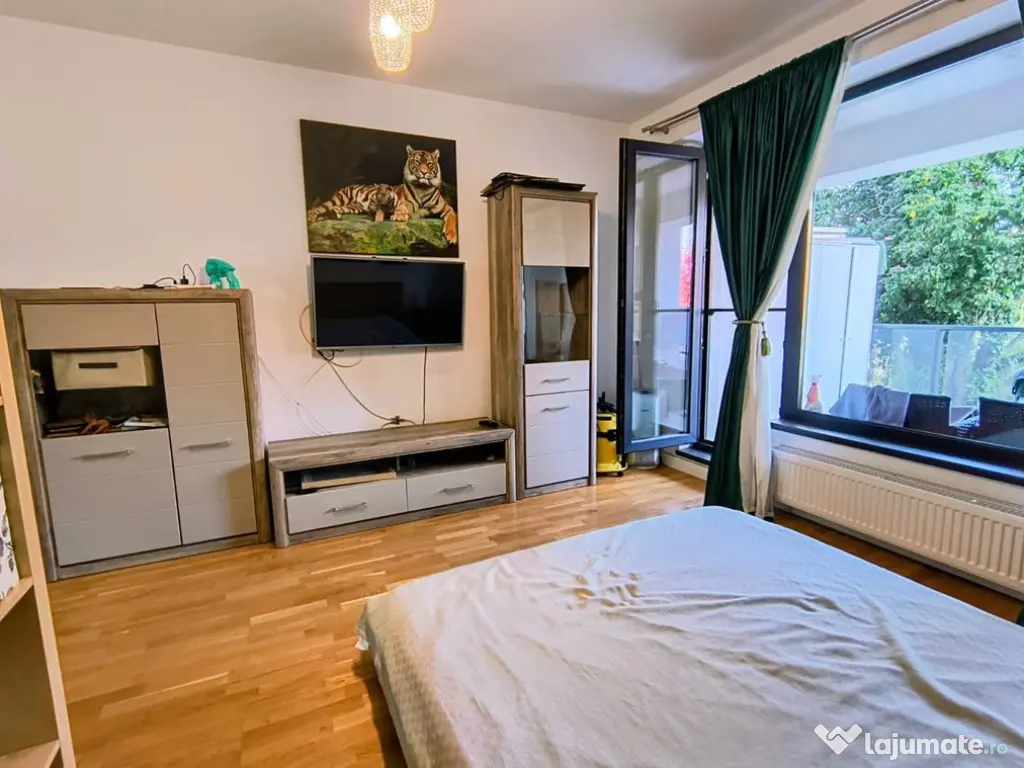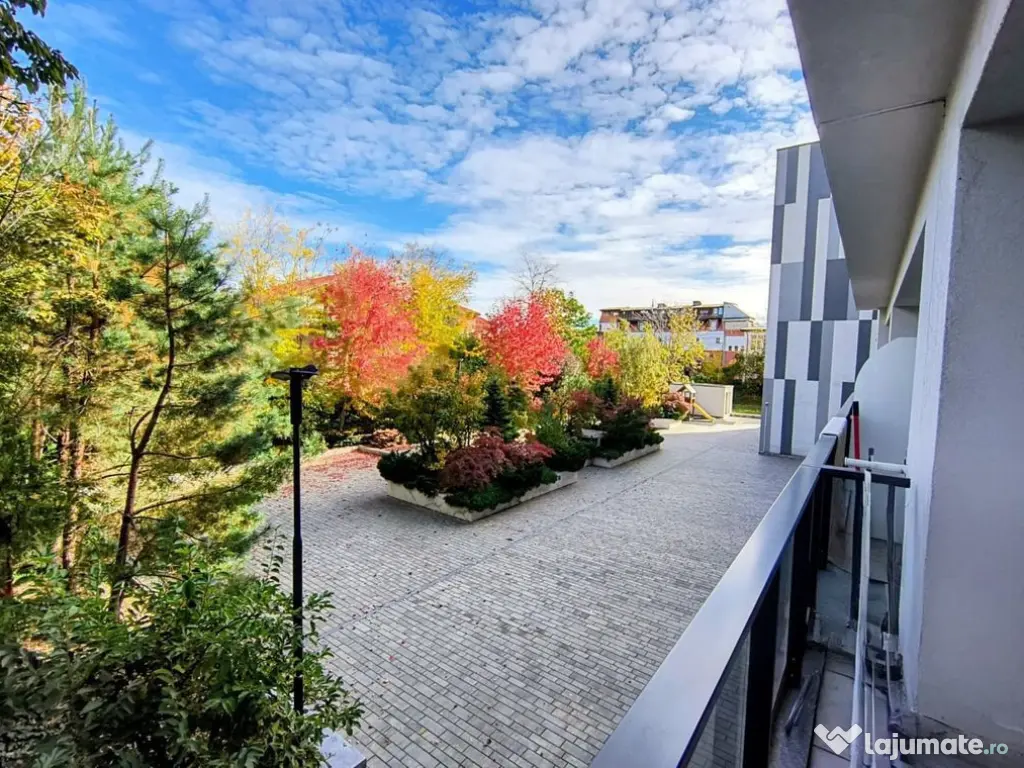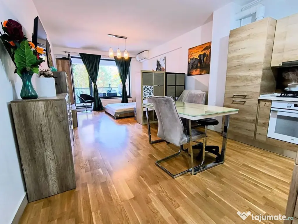 Studioul se afla la etajul 1/4, 42.27 mp utili + 9.62 mp balcon, St: 51.89, mobilat si utilat la cheie, parchet triplu stratificat, gresie faianță Marazzi, baterii Grohe, obiecte sanitare Ideal Standard, uși Pinum, centrală termica Buderus, A/C Hitachi, ferestre tripan, pereți din cărămidă izolație fonică și termică excelenta. Vederea este una deosebita catre o oaza de verdeata,
