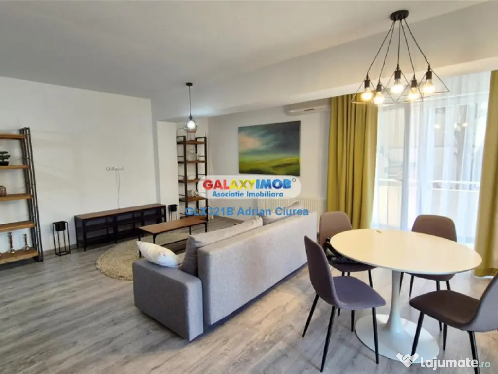 Oferta Exclusiva. Avem cheile proprietatii. Va oferim spre inchiriere apartament 3 camere in complex rezidential HIGH RESIDENCE. Complexul High Residence este amplasat in zona rezidentiala din nordul Bucurestiului, pe str. Erou Iancu Nicolae, vis-a-vis de Mark Twain International School, la 5 minute de Mall-ul Baneasa si la doar 3 minute de Parcul Privighetorilor si Padurea Baneasa. Apartamentul este situat la etajul 1 al unui bloc cu 6 etaje, cu o suprafata totala de 103 mp, bloc construit in anul 2008, decomandat, zona linistita, lift, interfon. Apartamentul dispune de urmatoarele dotari: centrala proprie, 3 aparate aer conditionat, sanitare KARAG si PRAXIS, acces internet, frigider, plita cuptor, masina de spalat rufe, hota. Apartamentul este foarte bine compartimentat, fiind format din living spatios cu bucatarie open-space cu acces in balcon, 1 dormitor dotat cu pat matrimonial si dressing, 1 dormitor dotat cu o canapea extensibila, spatii de depozitare, 2 grupuri sanitare, balconul are o suprafata de 14 mp. Acces rapid la mijloacele de transport in comun statia Jolie Ville Baneasa 2 minute. PRETUL APARTAMENTULUI INCLUDE 1 LOC DE PARCARE. Pretul de inchiriere este de 780 euro. Nu ratati ocazia de a locui intr-un spatiu modern, elegant si bine conectat! Contactati-ne pentru a programa o vizionare! 0757.110.449 Informatii eficienta energetica: Clasa energetica: Consumul de energie primara: Indicele de emisii echivalent CO2: Consum de energie din surse regenerabile: Confort: 1 Tip imobil: Bloc de apartamente Număr Băi: 2 Posibilitate parcare: Da Nr. locuri parcare: 1