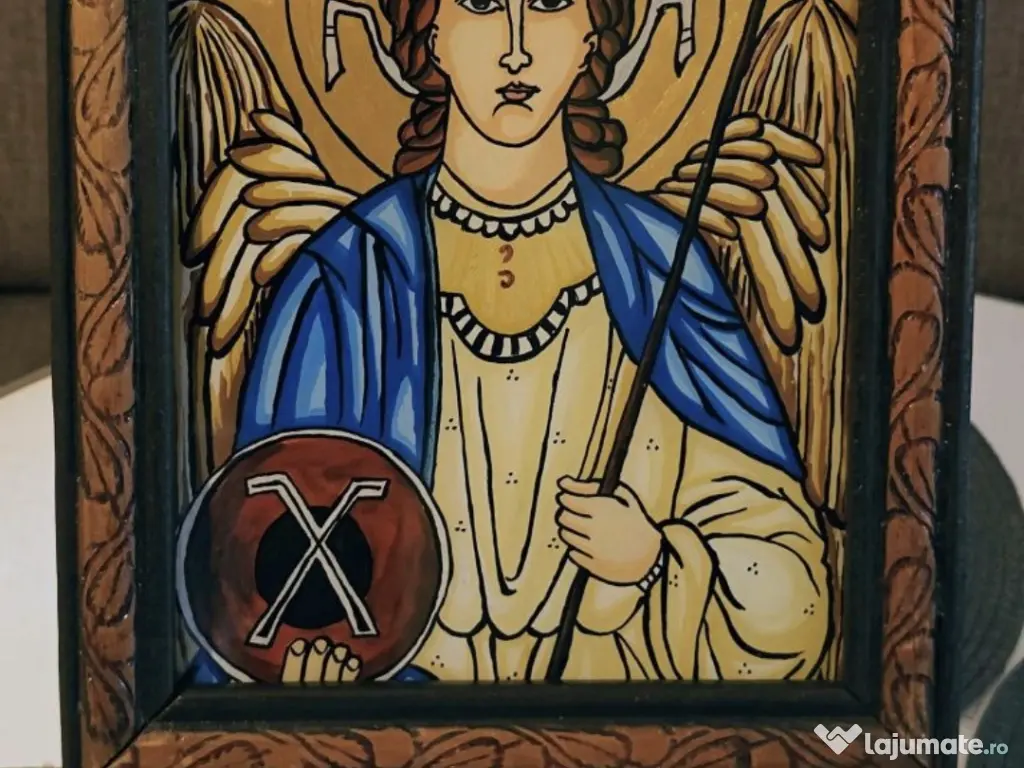 - "Arhanghelul Gabriel", dim.: 23x30.5 cm, rama vintage reconditionata, din lemn, cu agatatoare.