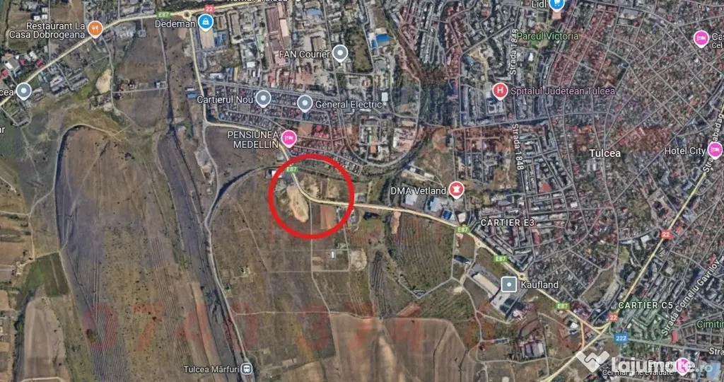 Imobilul este situat pe Strada Barajului - Varianta - E87, in apropierea Hipermarket-ului Kaufland si in vecinatatea Cartierului E3. Este ideal pentru dezvolatorii imobiliari fiind situat intr-o zona in continua dezvoltare!