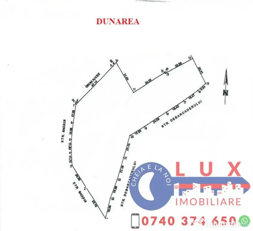 Agentia LUX Imobiliare vă propune spre vânzare un teren INTRAVILAN cu o suprafață de 9.000 mp și doua fronturi stradale generoase de 114 ml la Str Bacului si 165 ml la Str Debarcaderului.