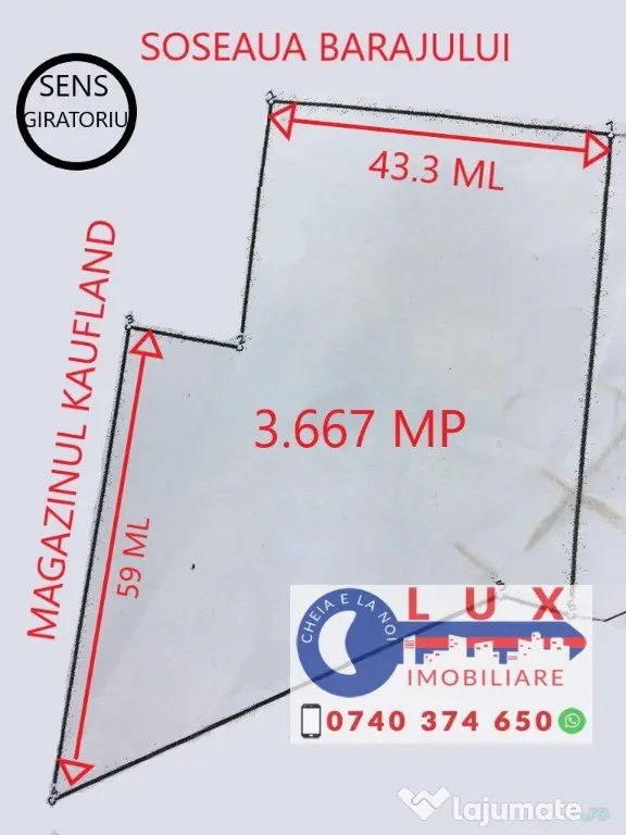 Agentia Lux Imobiliare va propune spre vanzare TEREN amplasat pe STR BARAJULUI, avand o suprafata totala de 3.667 mp.