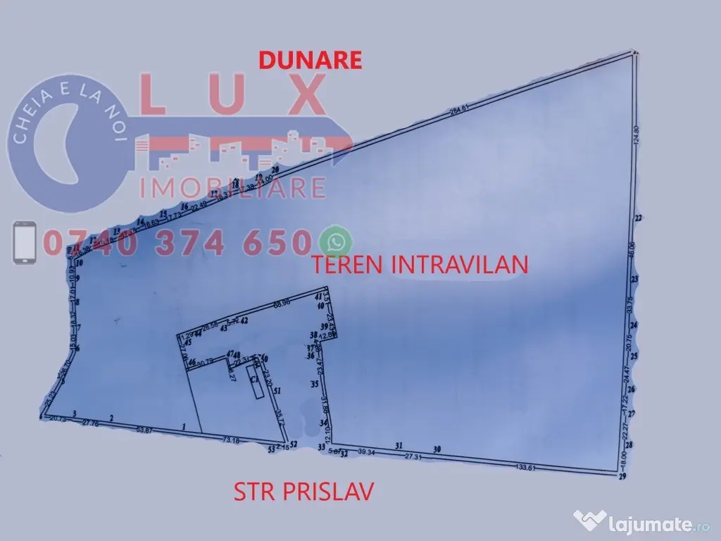 Lux Imobiliare va propune spre vanzare TEREN INTRAVILAN, situat pe Str Prislav, avand suprafata de 76.695 MP cu un front stradal generos de 383 ML. - Fiind pozitionat in zona industriala a orasului, locatia sa este ideala iar posibilitățile sunt nelimitate. Terenul are un potențial comercial-industrial si este pretabil pentru constructie hala, pensiune, parcare ambarcatiuni, spatiu comercial, etc. - Dispune de urmatoarele utilitati: apa curenta, energie electrica. - Pe teren se afla o constructie de 136 mp Pret: 40 Euro/MP Contactează-ne pentru detalii și vizionări: Marin Nicolae: 0740 374 650 Alina: 0744 814 740 Ioana: 0756 557 146 [email protected] www.agentialuximobiliare.ro Ne găsești la sediul LUX Imobiliare: Str. Babadag, Nr. 12, Bl. 6, Parter – vis-a-vis de CEC Bank Suntem activi pe Facebook, Instagram, TikTok și YouTube – @agentialux