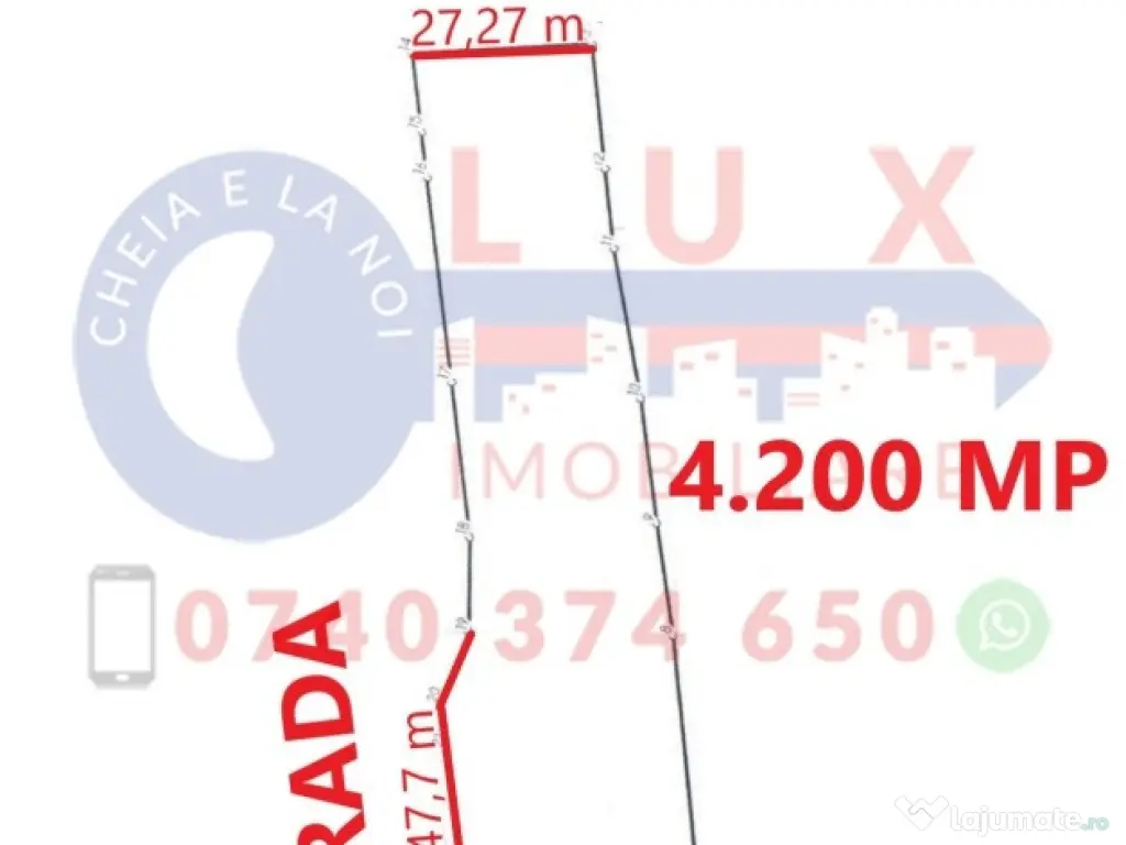 Agentia LUX Imobiliare va propune spre vanzare TEREN INTRAVILAN cu suprafata de 4.200 mp amplasat in Comuna MURIGHIOL la 80 m de DJ222C si cu deschidere la CANALUL ce duce catre LACUL MURIGHIOL. Localitatea se afla la doar 38 km de Orasul Tulcea, este parte integranta a Rezervatiei Biosferei Delta Dunarii si este o destinatie de vacanta foarte indragita de turisti. Terenul are un front stradal de 47,7 ml si deschidere la CANALUL CE DUCE CATRE LACUL MURIGHIOL de 27,27 ml! Este ideal pentru cei care își doresc să-și construiască propria casa de vacanta sau pentru cei care doresc o investitie in turism (camping, pensiune, etc)! Utilitati: apa si curent electric PRET 215.000 EURO Pentru mai multe detalii va rugam sa ne contactati: 0740 374 650 Marin Nicolae 0744 814 740 Alina 0756 557 146 Ioana E-mail: [email protected] www.agentialuximobiliare.ro Facebook: Agentia Lux / Lux Imobiliare Sediul Agentiei Lux Imobiliare: Strada Babadag, Nr 12, Bl 6, PARTER (vis-a-vis de CEC Bank)