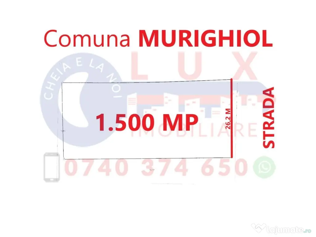 Agentia LUX Imobiliare va propune spre vanzare teren intravilan situat in Comuna MURIGHIOL, intr-o zona cu potential turistic, intre pensiuni, cu priveliste superba catre Delta Dunarii!! Localitatea se afla la doar 38 km de Orasul Tulcea, in Delta Dunarii, pe malul Lacului Murighiol si cu deschidere catre bratul Sfantu Gheorghe. MURIGHIOL este o destinatie de vacanta foarte indragita de turisti. Suprafata terenului este de 1.500 mp si are un front stradal de 26,2 ml. Accesul se face pe strada asfaltata. Utilitati: apa curenta, energie electrica si canalizare. Datorita amplasarii, proprietatea este ideala pentru o investitie in turism (pensiune, casa de vacanta, complex turistic, camping, etc)! SUPER PREȚ: 28 EURO / MP Profitați de această oportunitate de investiție situată în DELTA DUNARII si contactati-ne: 0740 374 650 Marin Nicolae 0744 814 740 Alina 0756 557 146 Ioana E-mail: [email protected] www.agentialuximobiliare.ro Facebook: Agentia Lux / Lux Imobiliare Sediul Agentiei Lux Imobiliare: Strada Babadag, Nr 12, Bl 6, PARTER (vis-a-vis de CEC Bank) Ne gasiti pe INSTAGRAM si pe TIK TOK