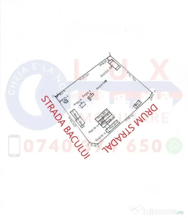 Proprietatea are deschidere la Strada Bacului de 148.28 ml si la drum stradal de 167.34 ml.